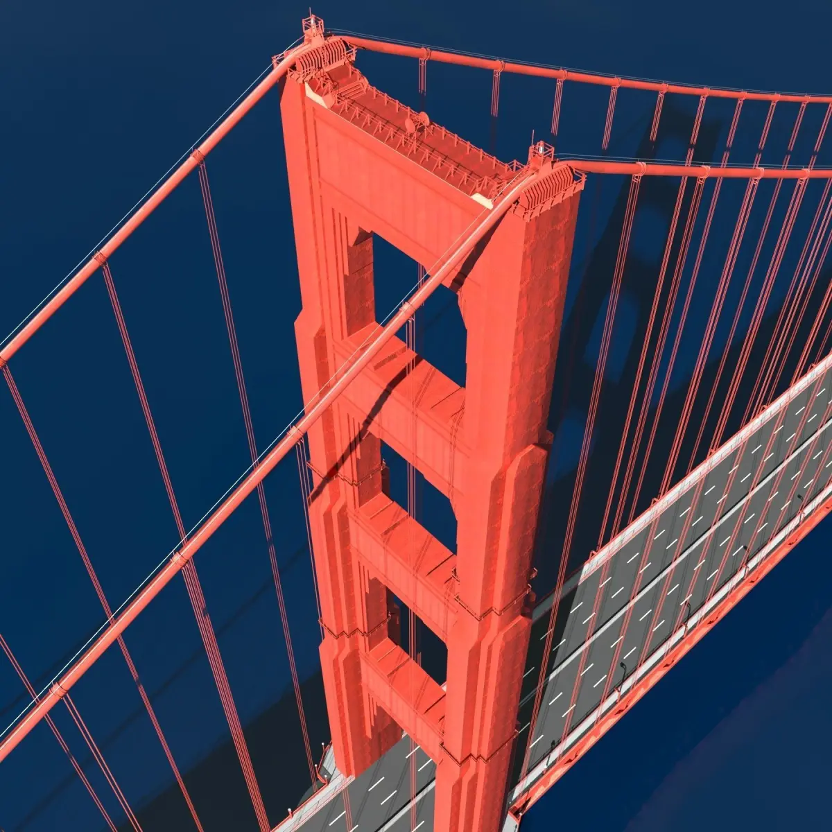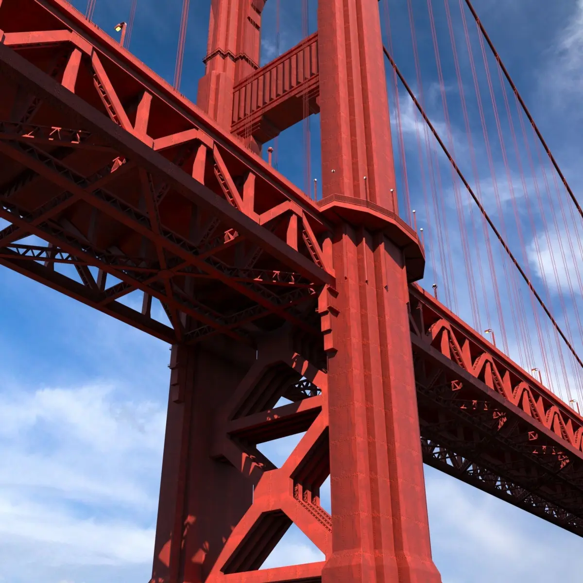 Quality, professionally designed high poly model of the Golden Gate Bridge located in San Francisco modelled in 3D Studio Max 2023 and Brought into Blender 3.1.2