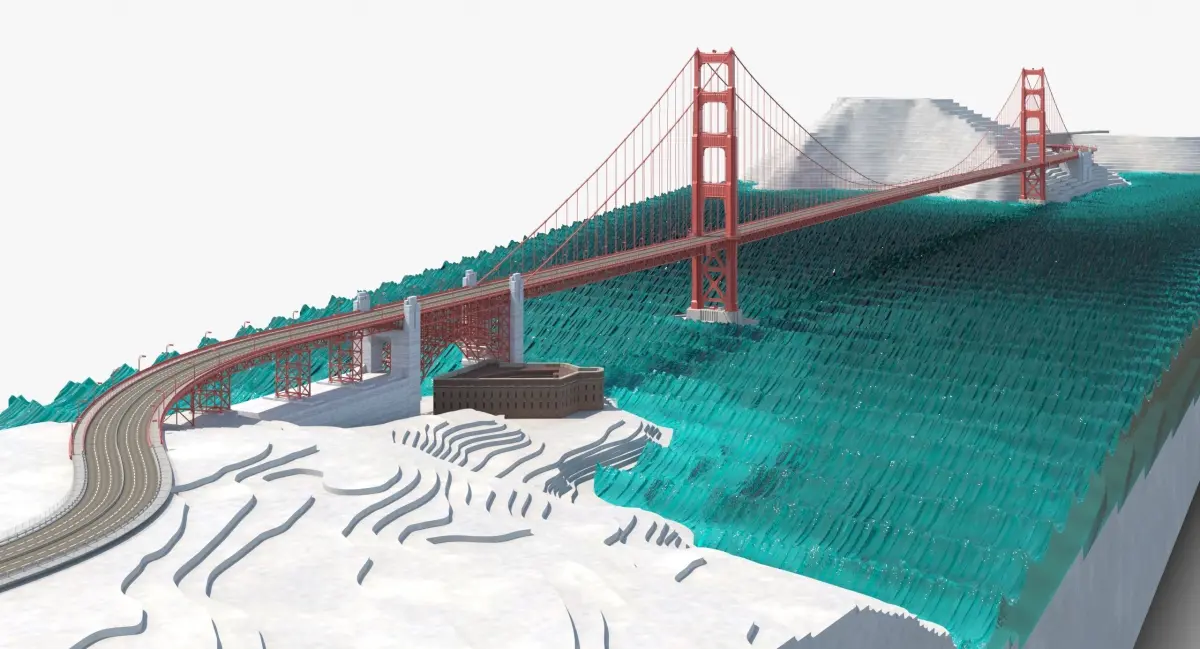 This Golden Gate Bridge Environment is a high quality, photo real model that will enhance detail and realism to any of your rendering projects. File units - cm. The model has a fully textured, detailed design that allows for close-up renders, and was originally modeled in 3ds Max 2014 and rendered with V-Ray.