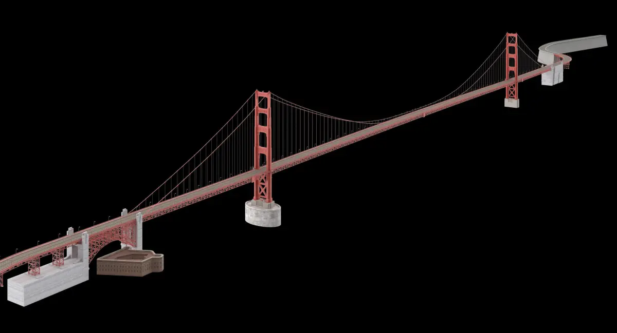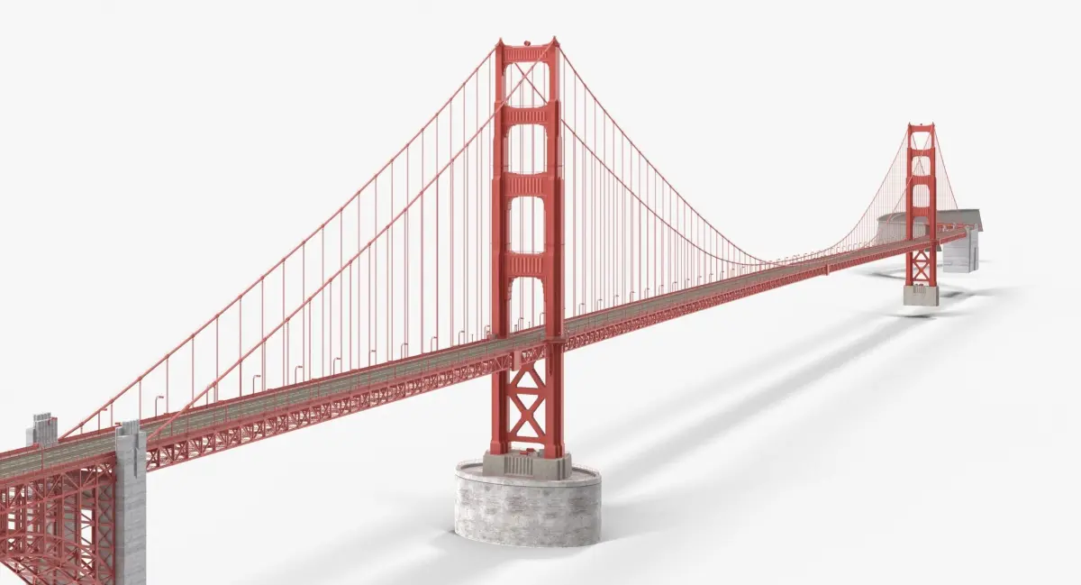 This Golden Gate Bridge is a high quality, photo real model that will enhance detail and realism to any of your rendering projects. File units - cm. The model has a fully textured, detailed design that allows for close-up renders, and was originally modeled in 3ds Max 2014 and rendered with V-Ray.