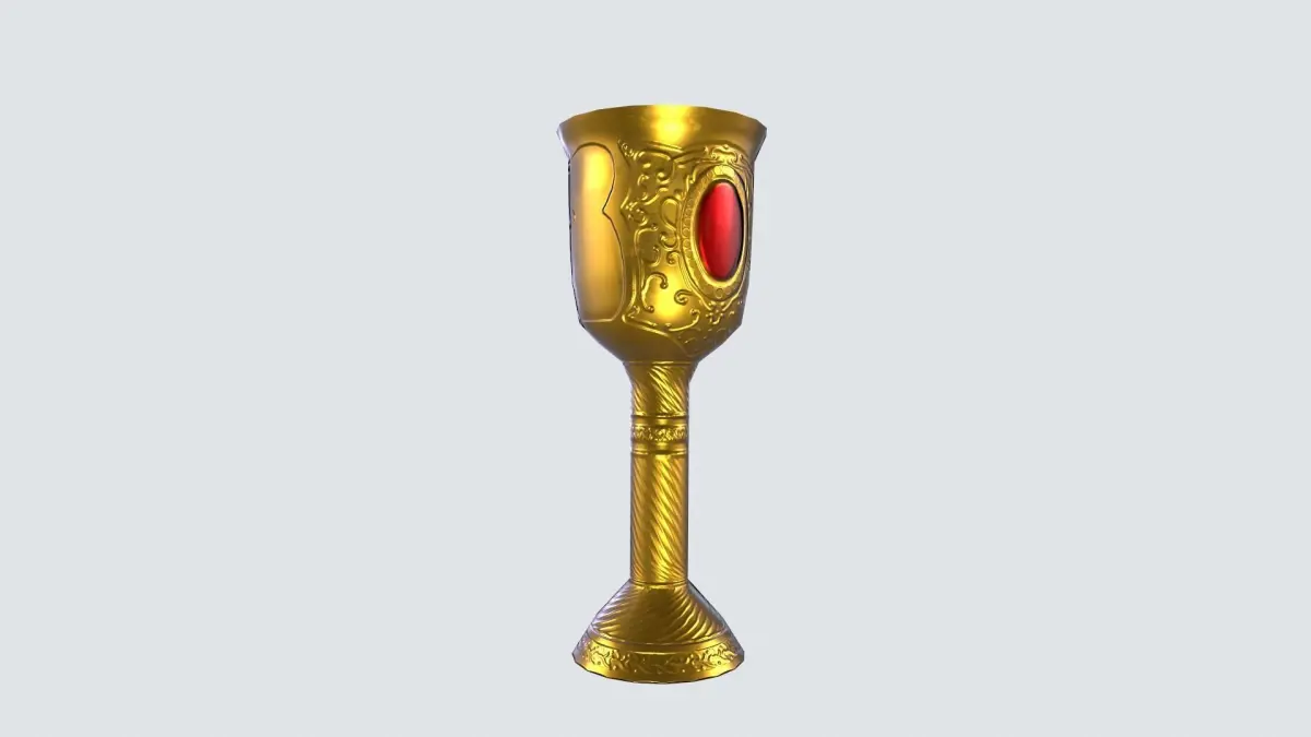 Low poly golden goblet with engravings and gem made of normals. 1 mesh and 3 texture packs with different gem included.