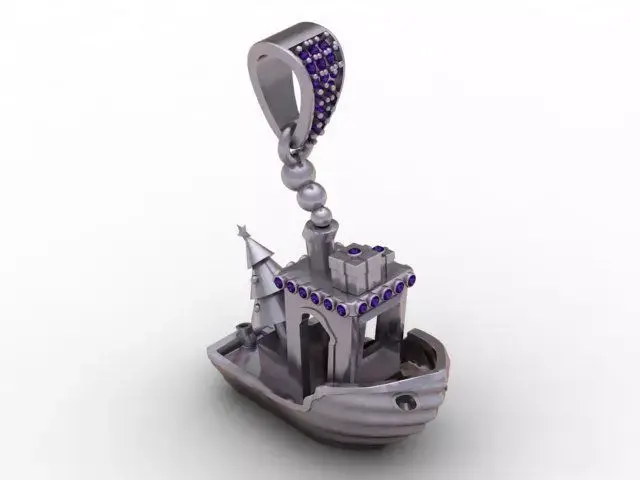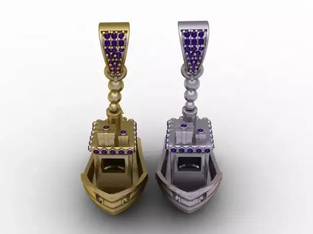 A beautifully sculpted 3D printable gondola/boat pendant featuring detailed railings, gemstone accents, layered bead connector, and a diamond-paved bail. Perfect for nautical, travel, and artistic jewelry collections.