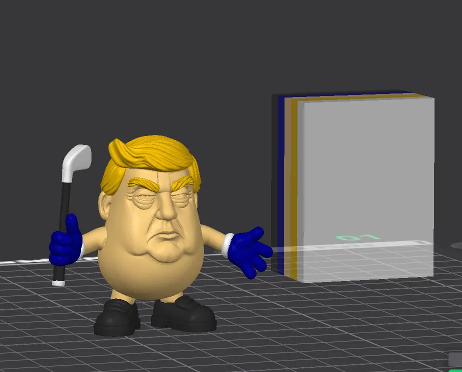 Design ConceptThis model is a humorous take on a well-known public personality depicted as a classic toy character, holding a golf club. The blend of humor and caricature offers a unique artistic expression.