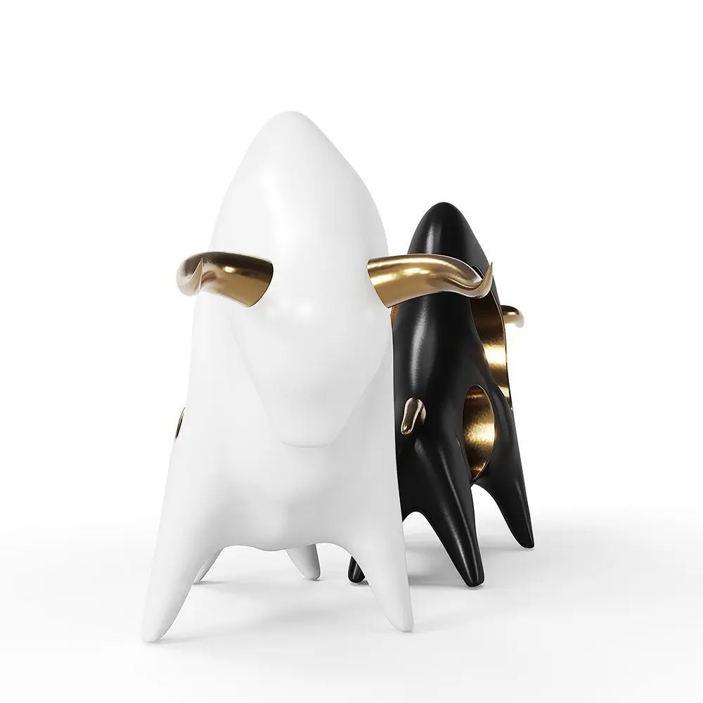 Golden Horn Taurus Figurine - elegant ceramic interior decoration accessories.White and black version included - subdivision ready and suitable for close-up shots.A printable version of the model is included – in a single mesh, with no detachable parts.