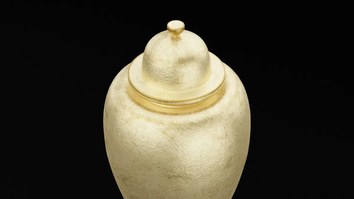 The Golden Jar is a stunning 3D model that brings a touch of opulence to any scene. This jar is designed with a sleek, polished gold surface, showcasing a reflective texture that mimics the lustrous shine of real gold. Its ornate details, such as intricate carvings around the rim and base, enhance its majestic appearance, making it ideal for use in fantasy or treasure-themed projects. The model is versatile and can be used in a variety of settings, from game design to high-end animations. Available in BLEND, FBX, OBJ, and DUF formats.