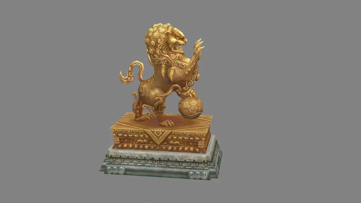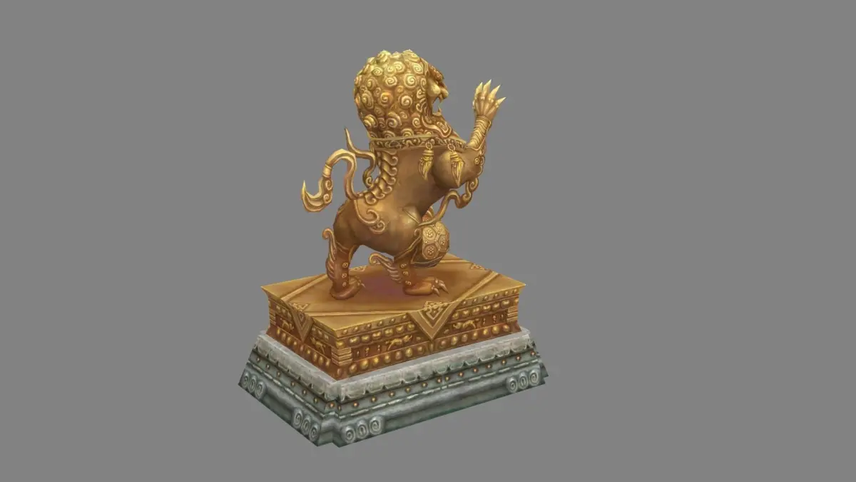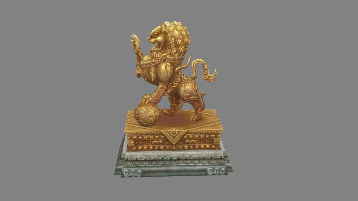 Golden lion sculpture - Asian lion sculpture Low-poly 3D model