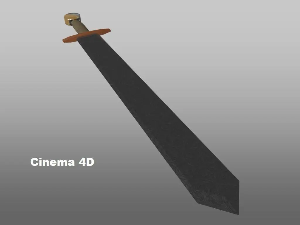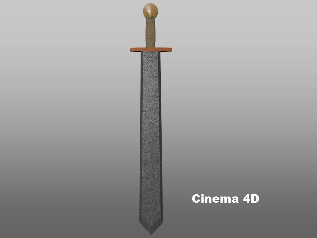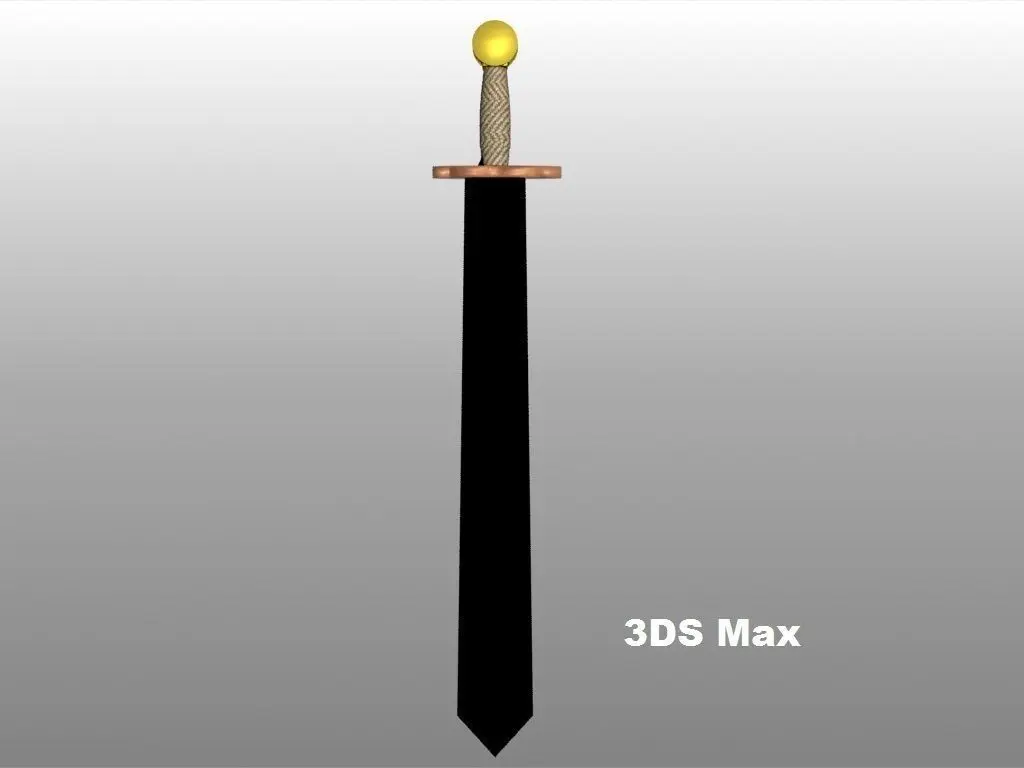 It is a sword with a round golden colored pommel and a wide point like the one used by medieval knights. Made in c4d but adapted in terms of geometry to work in maya and 3ds. I hope you like it.