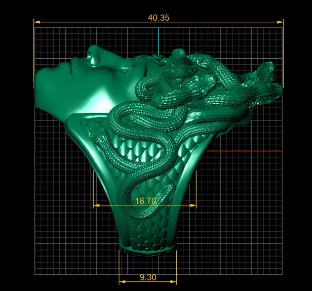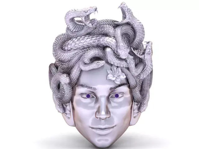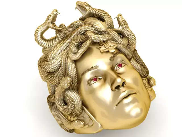 A luxurious 3D sculpted head inspired by the myth of Medusa, crafted entirely in reflective gold. Intricate serpents coil and intertwine to form the hair, each detailed with realistic scales and dynamic movement. The face features smooth metallic surfaces and striking gemstone-like eyes, creating a powerful contrast between elegance and danger. This model blends classical mythology with futuristic luxury aesthetics, making it ideal for digital art, concept design, fantasy worlds, NFTs, and high-end visual projects.