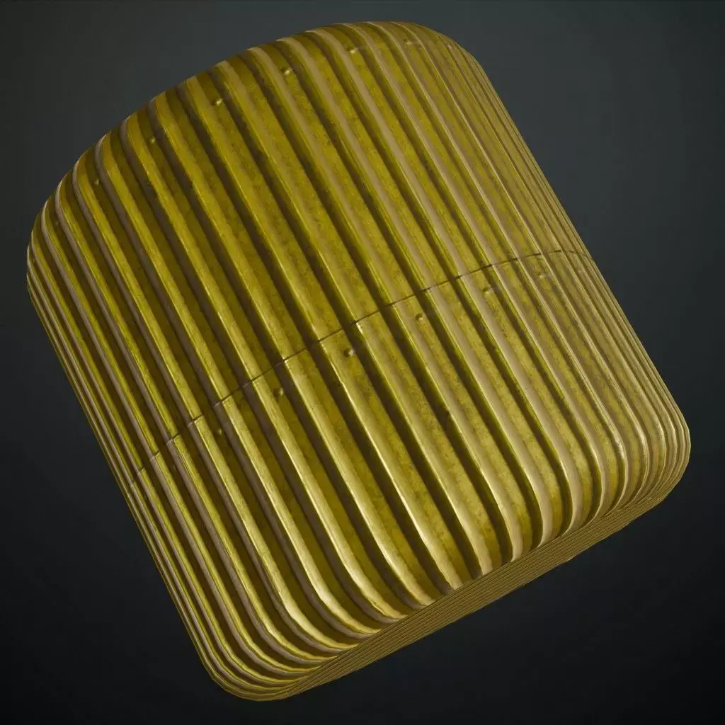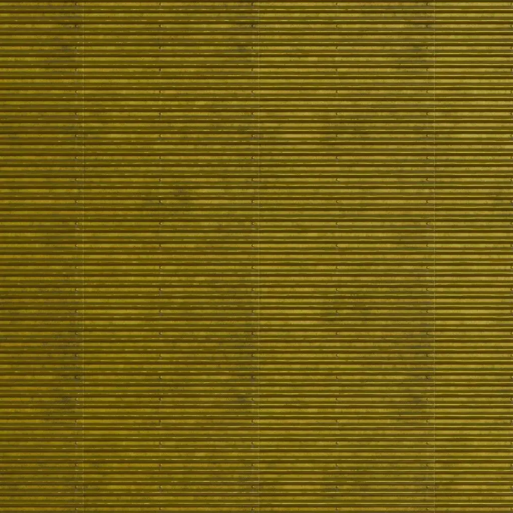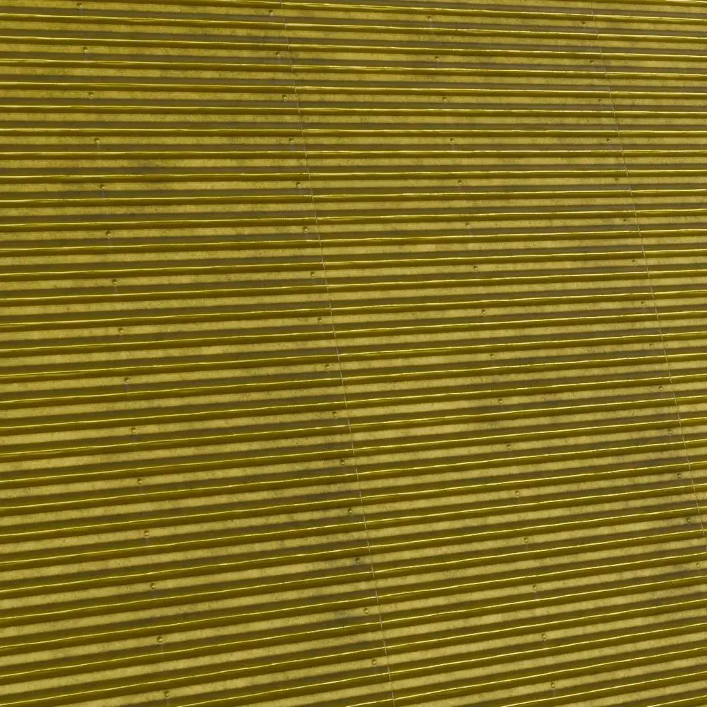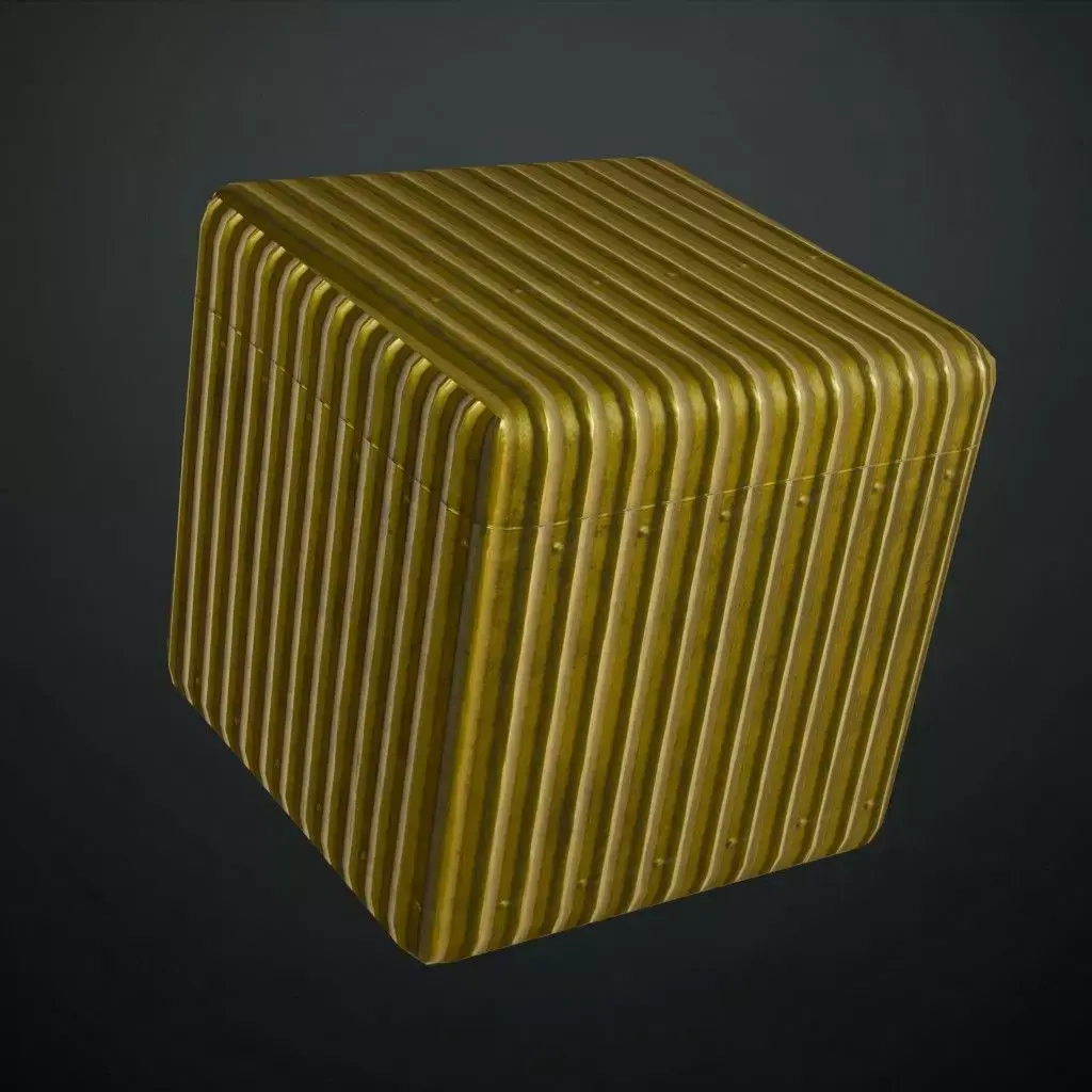This is a high-quality PBR Texture Pack of Golden Metal Corrugated plating.All essential Maps, including BaseColor, Normal, Roughness, Height, and Metallic, are provided to deliver a highly realistic industrial luxury finish. This material features a vertically ridged corrugated profile with a premium golden luster and subtle industrial bolt details along the seams. It is an excellent choice for luxury warehouse aesthetics, high-end cargo containers, or decorative architectural siding.
