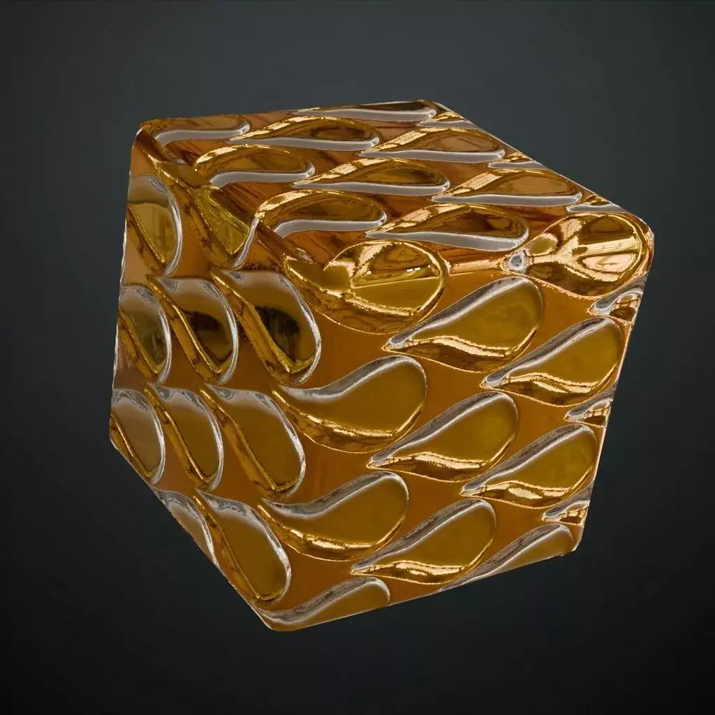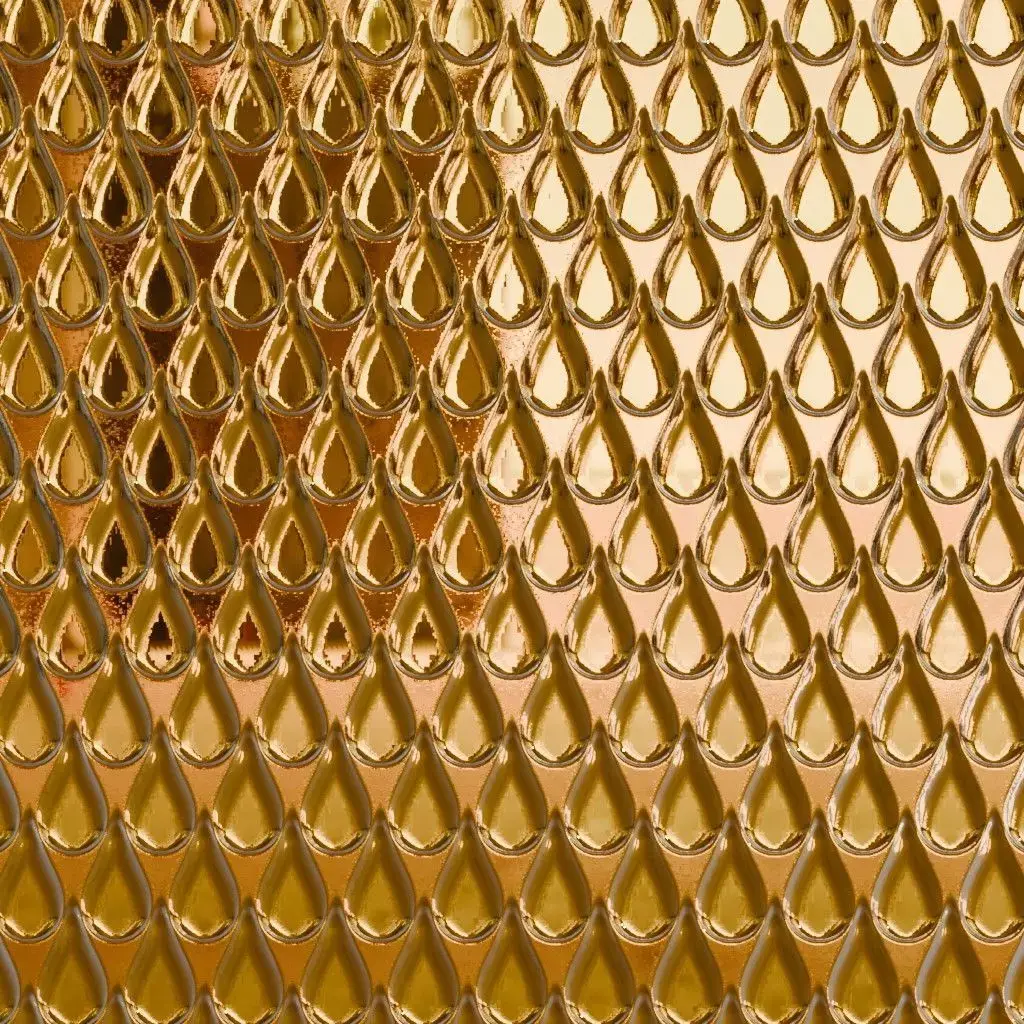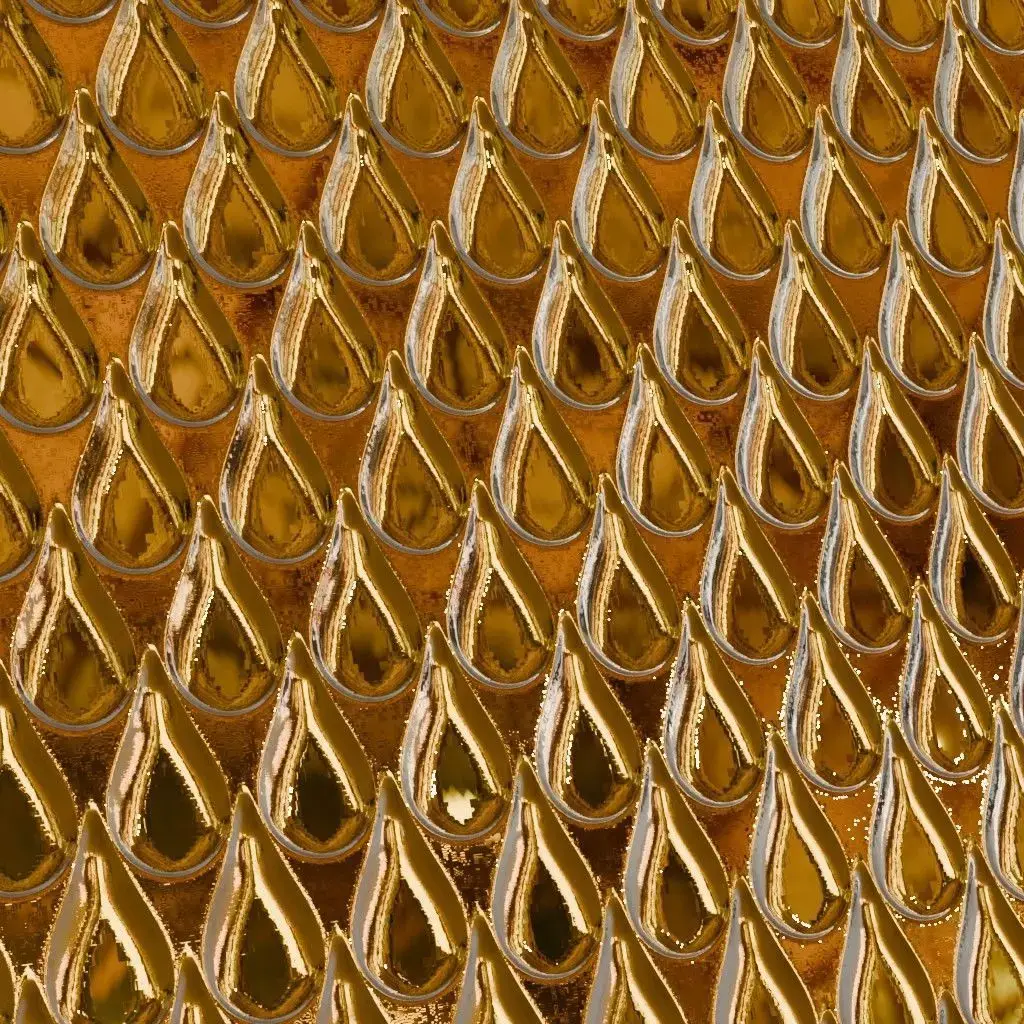 This is a high-quality PBR Texture Pack of a Golden Metal Plate.All essential Maps, including BaseColor, Normal, Roughness, Height, and Metallic, are provided to deliver a striking and high-end organic-industrial finish. This material features a unique repeating pattern of stylized, liquid-like teardrop or droplet shapes embossed across a premium golden surface. The high-gloss metallic finish and smooth, curved geometry create dynamic reflections, making it an exceptional choice for luxury feature walls, high-fashion retail backdrops, or avant-garde architectural cladding.