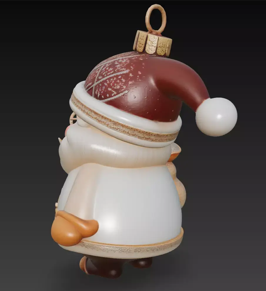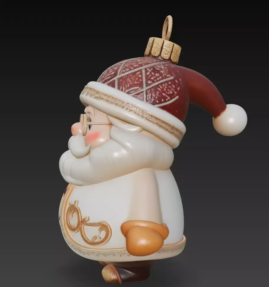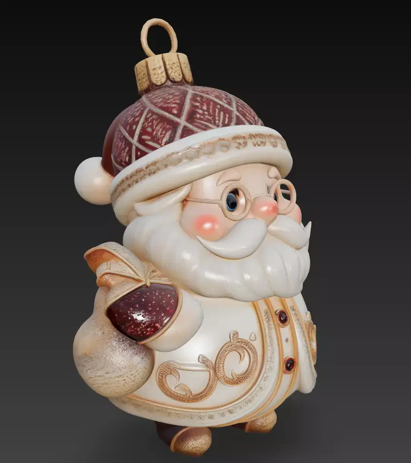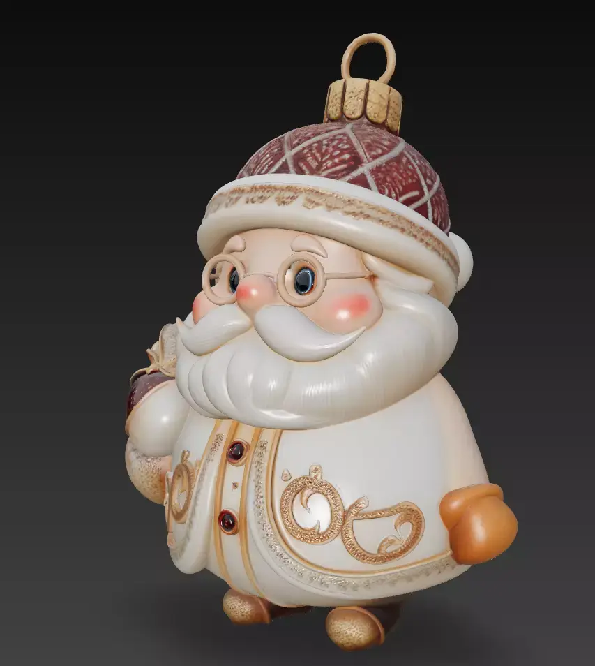 Every feature — from the textured hat and delicate engravings on his coat to the soft golden tones — is crafted with care to evoke a luxurious Christmas spirit. Perfect for CGI decoration, 3D printing, or premium festive design projects.