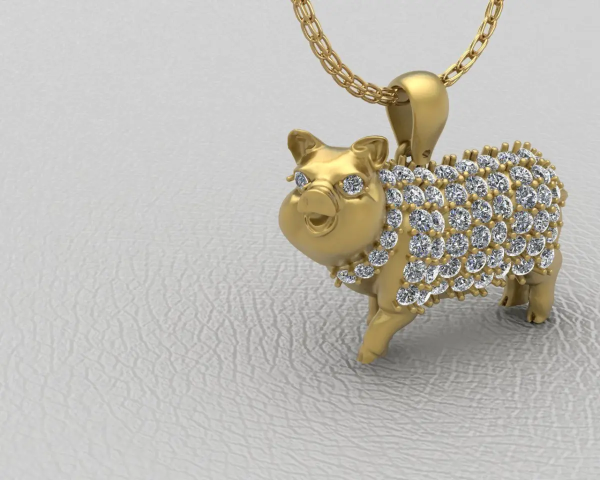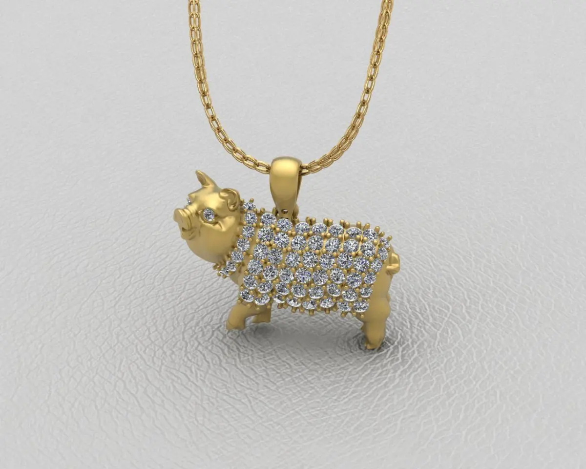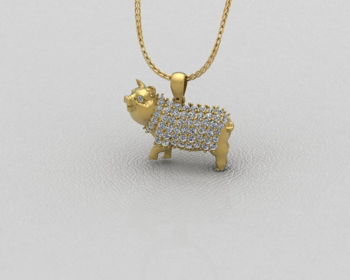 Pig souvenir jewelry pendant. The pendant is designed delicately and meticulously by details with Rhino Matrix, Zbrush software. Suitable for making jewelry of gold, silver, platinum ... You can ask us questions if you have any questions. We will support and reply as soon as possible. Size 22.5 mm 3D Model design of this Traditional Chinese Zodiac signs transformed into cute and energic cartoon versions of themselves. The three-dimensional carving technique makes the zodiac Pig vivid and lively as ever. Keep your childhood innocence with this auspicious good luck charm.
