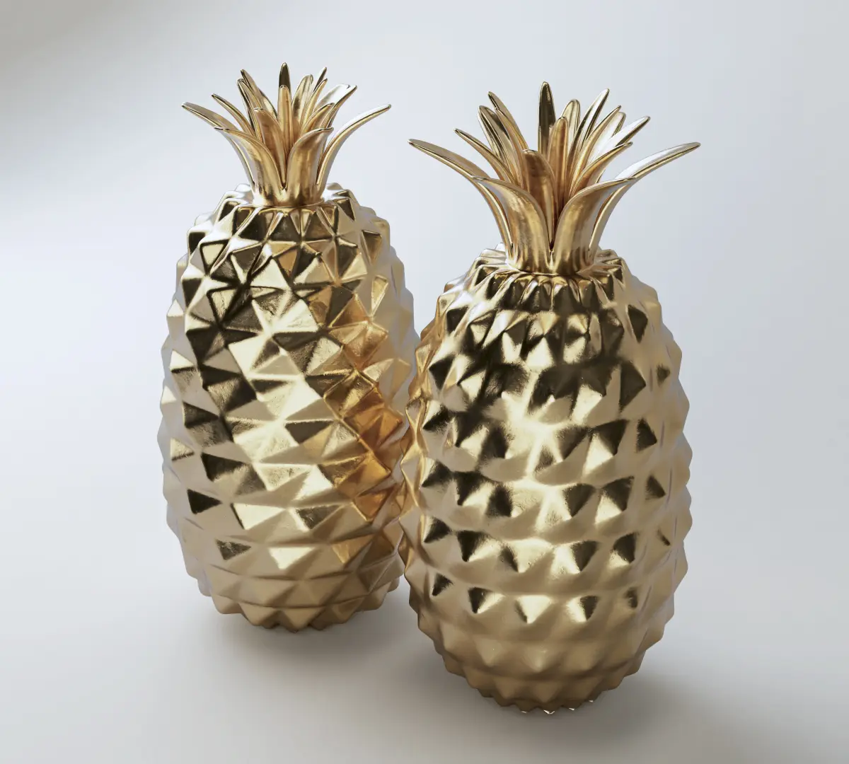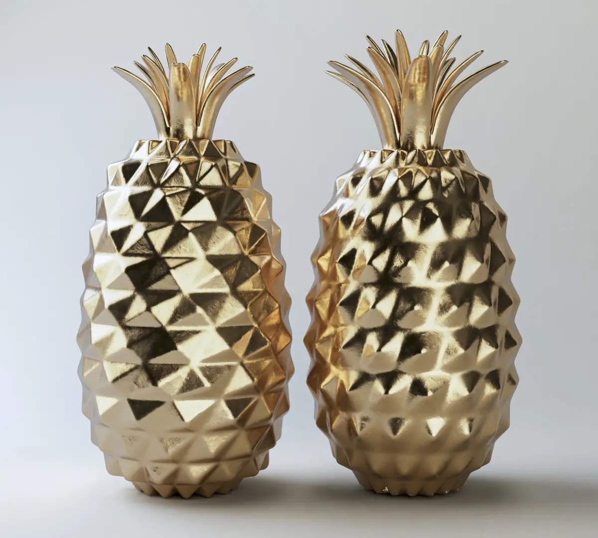 A pair of golden pineapple decorative statues.Created natively in Cinema 4d and rendered with Redshift.May contain procedural and parametrized meshes which may translate to higher poly count than stipulated if converted to other formats.