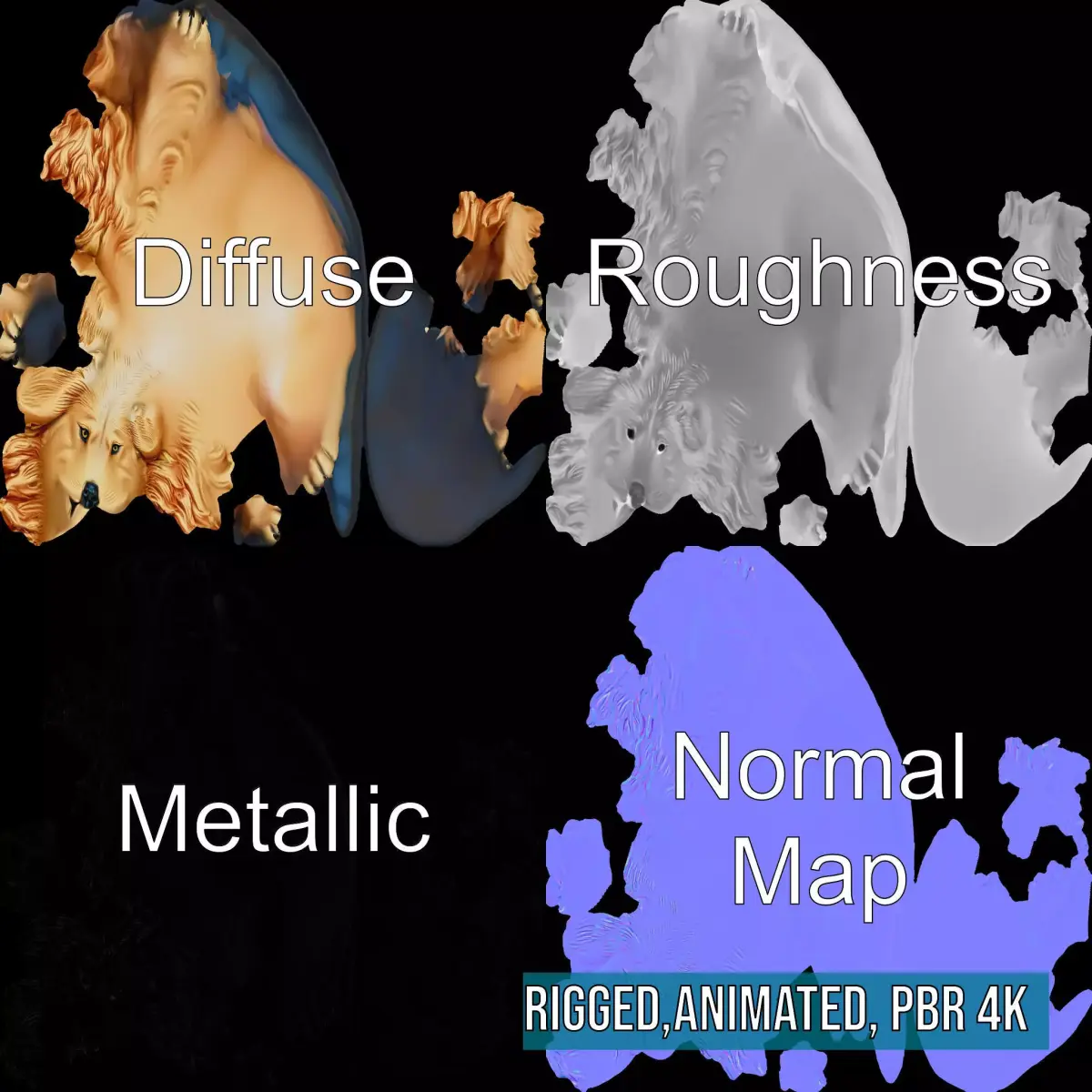 This charming Golden Retriever Statue model pack features a lifelike representation of a loyal and friendly golden retriever with intricate fur detailing and expressive eyes. Ideal for enhancing virtual environments, game scenes, and interactive displays, it adds a touch of warmth and companionship. Each model has 3 levels of detail: low-poly (1000 triangles for mobile), middle-poly (10,000 triangles for environment), and high-poly (100,000 triangles), which allows for the use of this model in production rendering (such as 3ds Max, Maya, Cinema 4D, Blender, Vray/Corona/Cycles and all others), game engines (Unity and Unreal compatible), and interactive presentations, providing a choice of detail based on the LOD System principle. The model's textures are PBR, Diffuse, NormalMap, and reflection/roughness/metallic, which are suitable for any modern rendering engine. All models are accurately unwrapped and have no overlapping UV. All textures are 4096*4096 in size. Please like and leave a comment for the model if you enjoyed it.