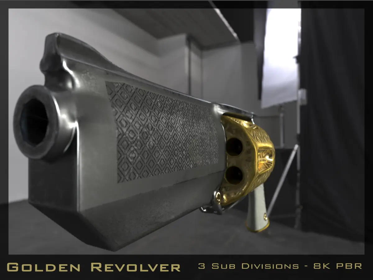 This is an original fantasy style golden revolver. The model has been created in 3ds max and textured in Substance painter.
