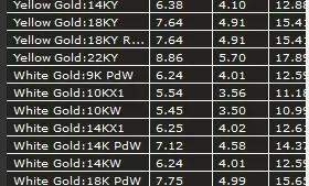 yellow gold14k size-6.38mmyellow gold18k size-7.64mmwhite gold14k size-6.24mmfinger dimensions-16.80mm