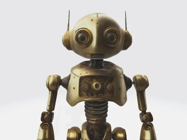 A sleek, golden robot with a futuristic design, featuring intricate metallic details and smooth, polished surfaces. Perfect for sci-fi, tech, or futuristic-themed projects, this robot embodies advanced technology and innovation, ideal for 3D modeling, games, or collectibles.
