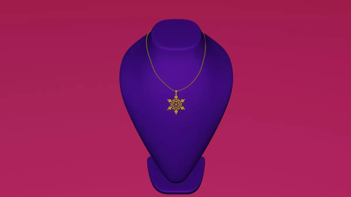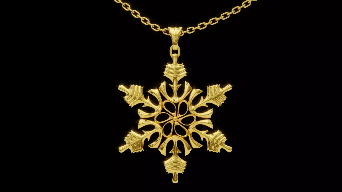 Winter elegance in gold This snowflake pendant was created in Blender — a blend of natural delicacy and 3D precision.Every detail was modeled to capture perfect symmetry and light. Ideal as jewelry or a 3D design piece.