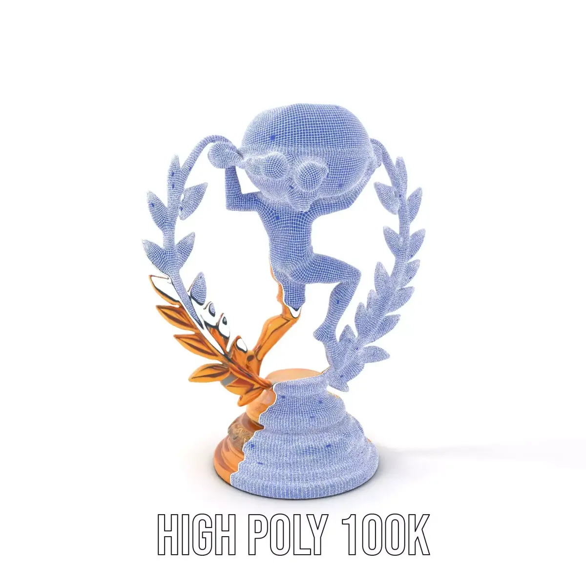 Ideal for use in sports games, award ceremony simulations, educational projects, and promotional materials. The first image is the reference used for creating the 3D model. It is important to carefully evaluate the quality of the model by examining the preview images that display the topology and polygonal mesh. These previews (WIRE and WEB 3D Preview) clearly demonstrate how accurately the model matches the original reference and how well the geometry has been executed.