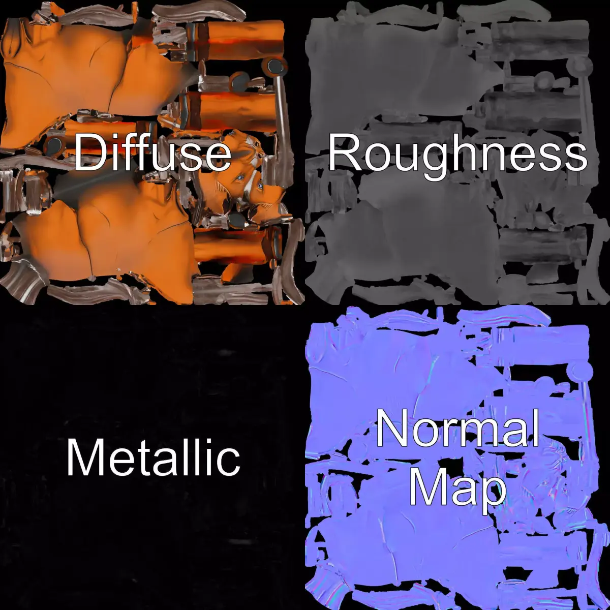 The model's textures are PBR, Diffuse, NormalMap, and reflection/roughness/metallic, which are suitable for any modern rendering engine. All models accurately unwrapped and have no overlapping UVs. All textures are 4096*4096 in size.