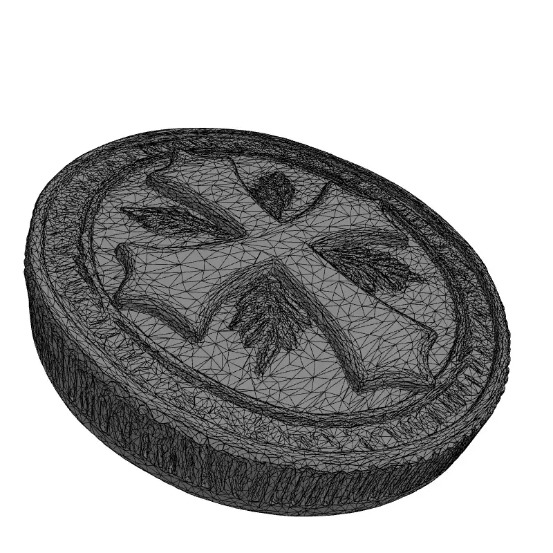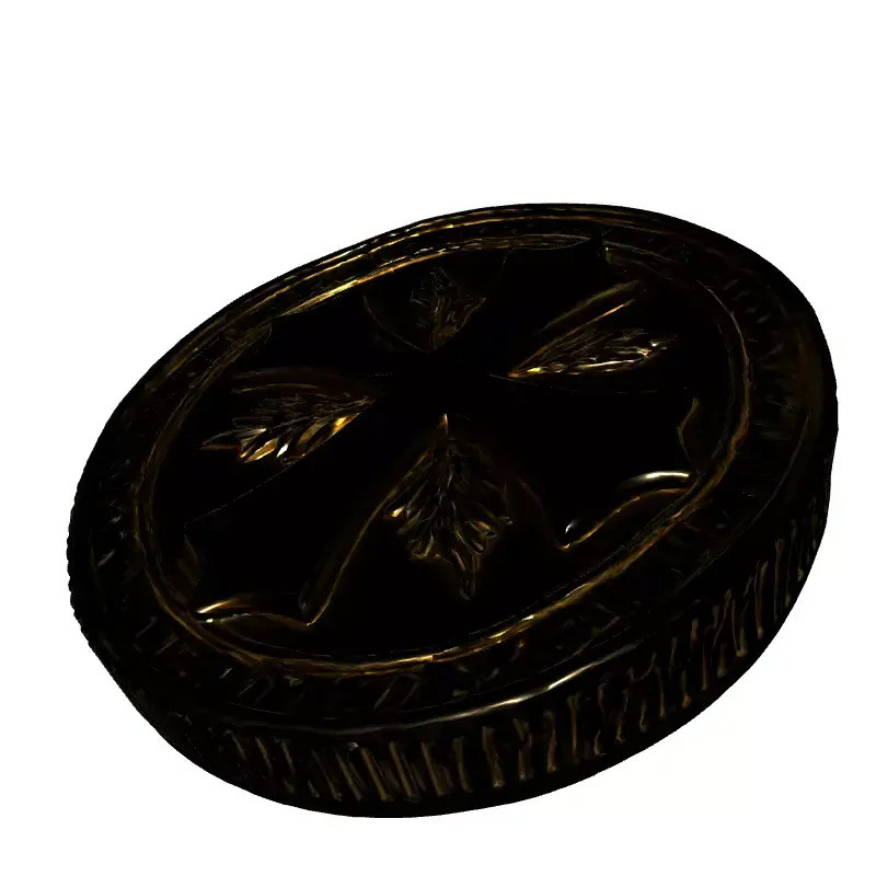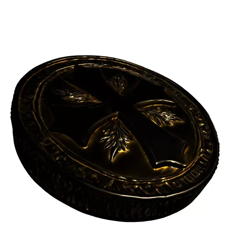 This highly detailed 3D model presents a luxurious gold coin or ancient medallion, meticulously crafted with historical or fantasy aesthetics in mind. The centerpiece features an elegant, stylized cross design, beautifully framed by intricate, organic leaf patterns, giving it an aura of significance and value. Its robust, ridged edge and polished surfaces are rendered with exceptional precision, reflecting light dynamically to enhance its realistic metallic gleam. This versatile asset is perfect for a wide array of digital projects, including enhancing game environments, especially RPGs, historical, or fantasy titles as a treasure, currency, or quest item. It can also enrich architectural visualization scenes or be used for creating compelling digital art and animation. Furthermore, it is well-suited for augmented reality (AR) and virtual reality (VR) applications due to its optimized geometry and detailed PBR textures, which provide physically accurate material properties. The model boasts clean, efficient topology, making it ready for real-time applications or further subdivision for ultra-high-resolution renders. It comes fully UV unwrapped with professionally crafted PBR textures, ensuring seamless integration and stunning visual fidelity across various rendering pipelines. This asset ensures a professional and polished addition to any project, whether for close-up renders or integrated into larger scenes. The attention to detail makes it suitable for both static renderings and dynamic interactive experiences. Supported file formats include GLB, OBJ, STL, ABC, DAE, FBX, USD, and PLY, offering broad compatibility for professional workflows. Its high-quality PBR materials ensure consistent rendering across different software.