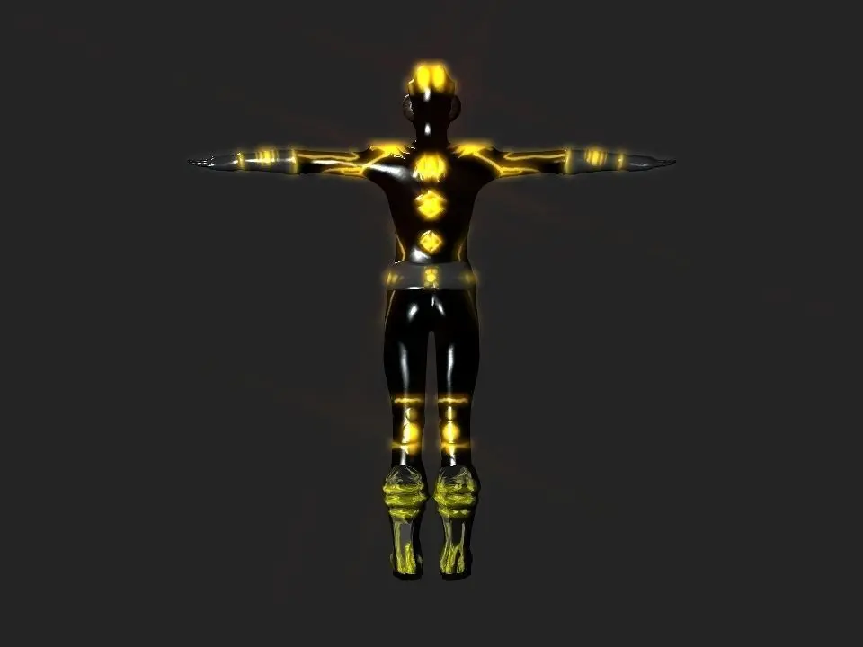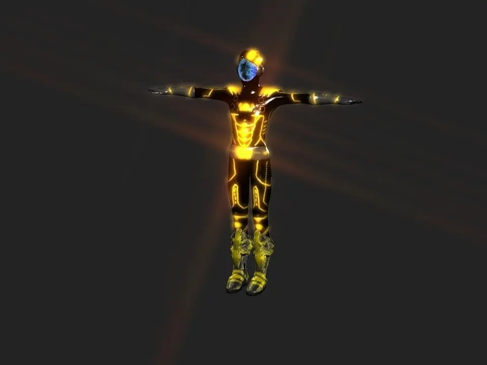 Then I decided to create this battle suit you see to please my self , because since a long time I gave up playing games and I prefered to create my own characters and 3d models , I called it glowing vine because the tapestery on it glow in yellow as vines contains gold bloods .