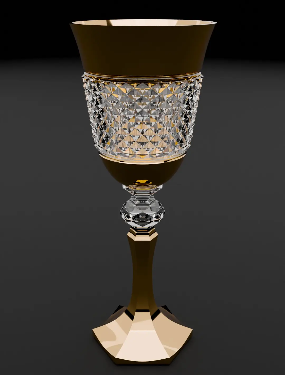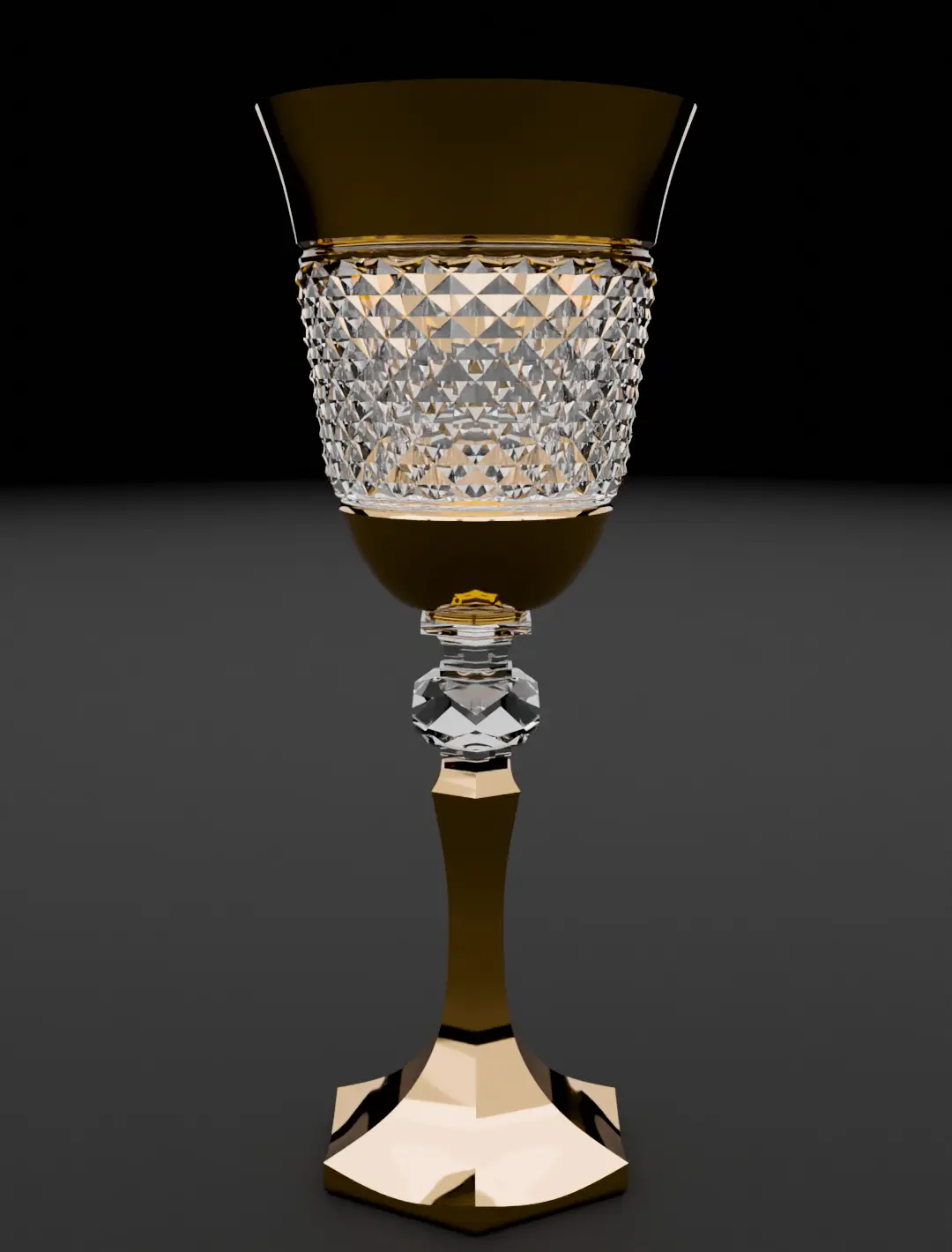Features of the model:Luxurious appearance: a harmonious combination of gold plating and sparkling crystal.Realism: a highly detailed model, ready for rendering with minimal post-processing.Versatility of use: suitable for visualization of restaurants, festive events, luxurious interiors and game projects.Optimized topology: the model is not overloaded with polygons, which ensures easy integration into scenes.Compatibility with popular 3D editors and game engines (Blender, Unreal Engine, Unity).This model of glass is the choice of those who want to emphasize the luxury and elegance of their projects. Make it part of your collection and create masterpieces!