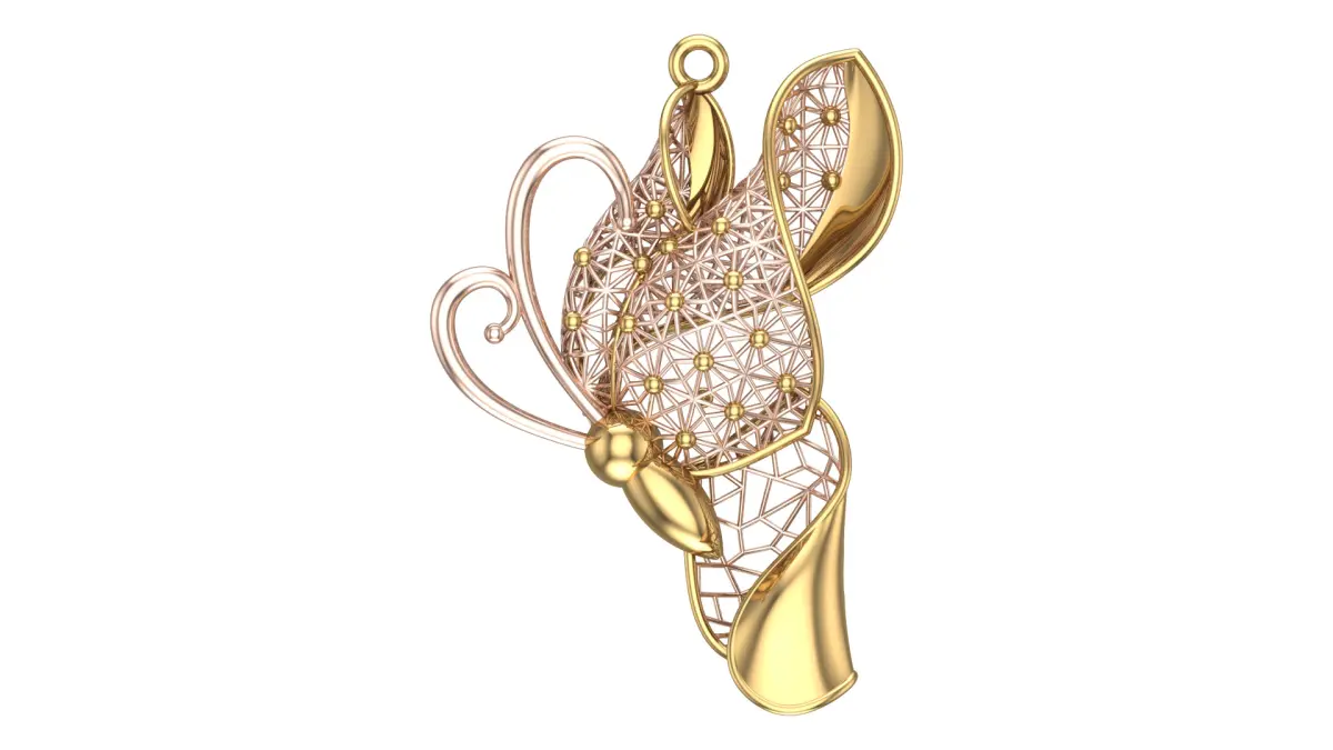 - Rendered in gold and rose tones
