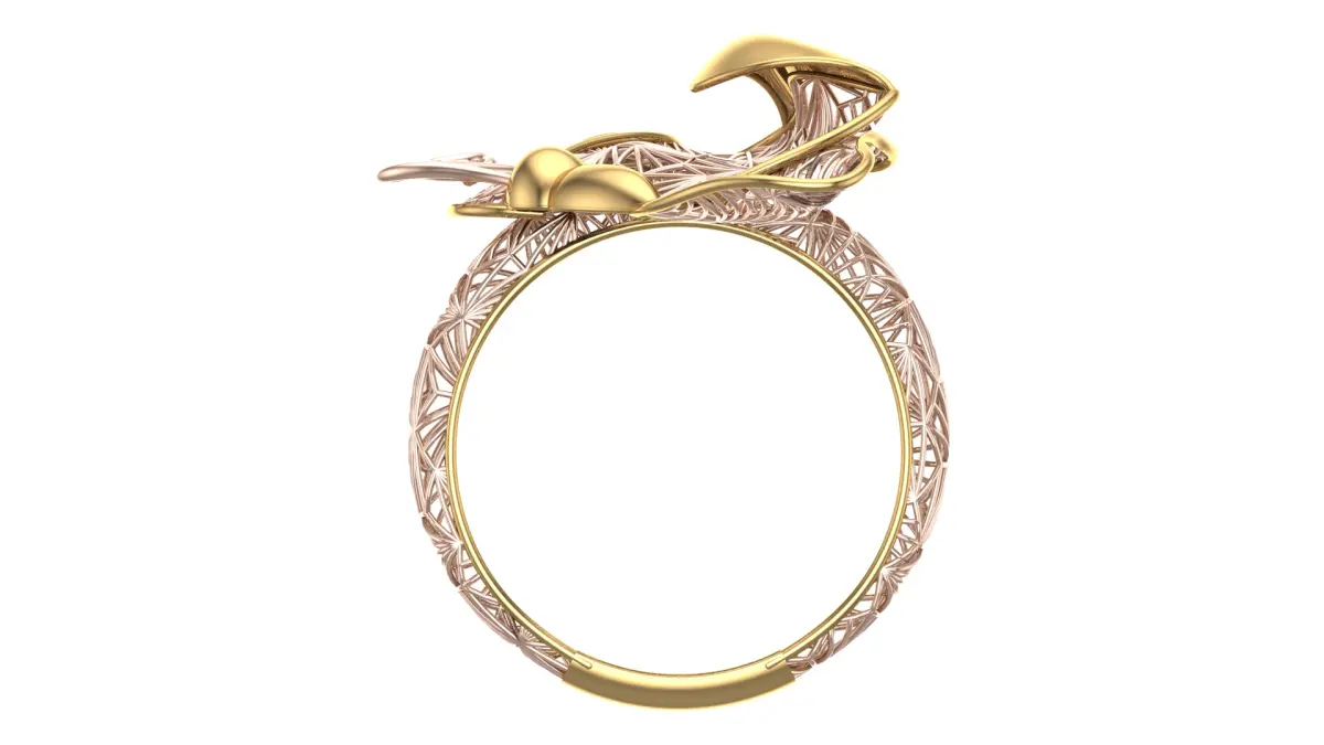 - Rendered in gold and rose tones