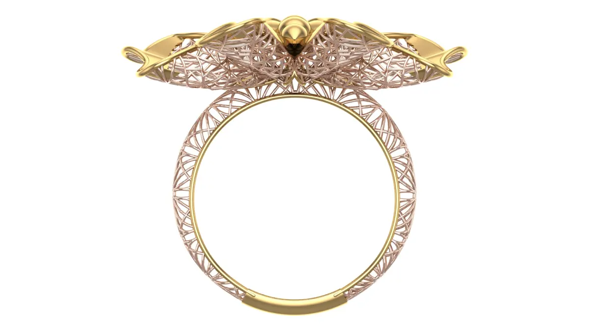- Rendered in gold and rose tones