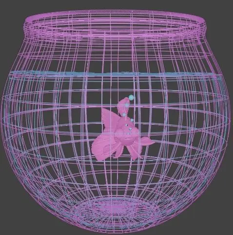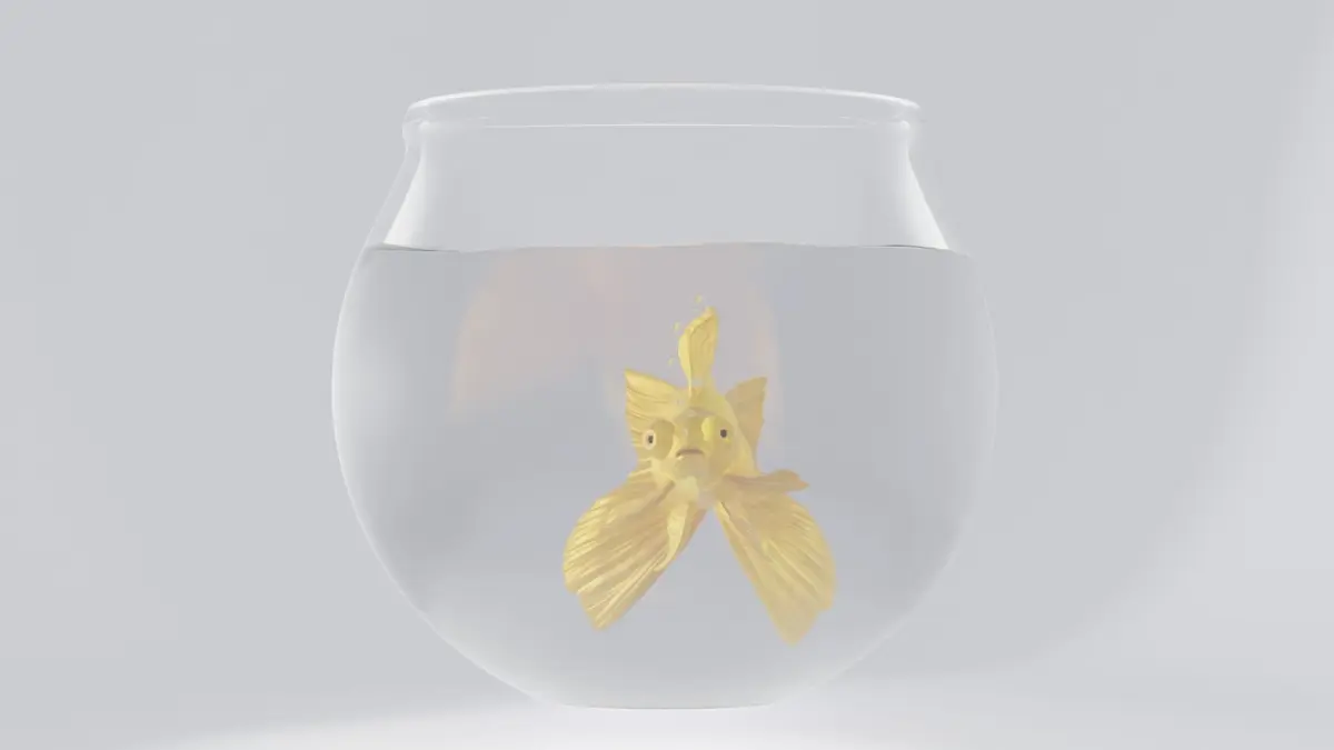 A highly polygonal model of an aquarium with a goldfish, a beautiful decoration for any interior.