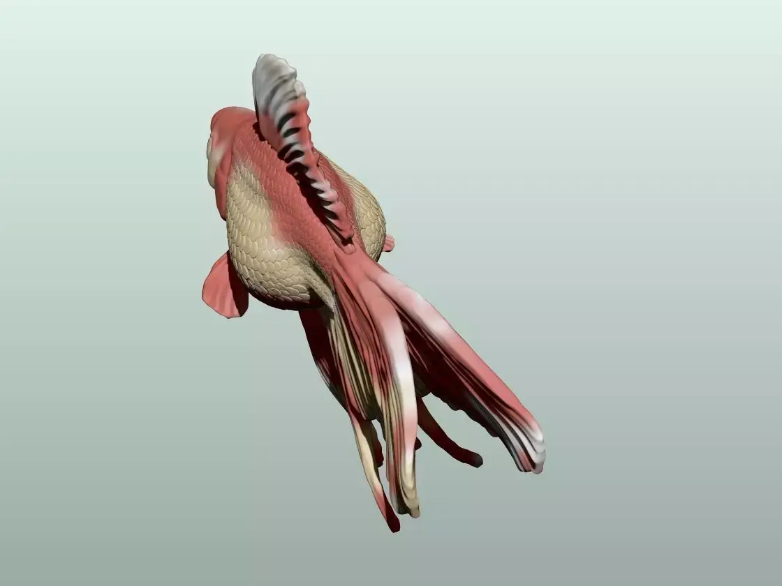 A stylized goldfish sculpted in ZBrush, available in multiple elegant poses. This model captures the flowing motion of a goldfish in water and is ideal for 3D printing.