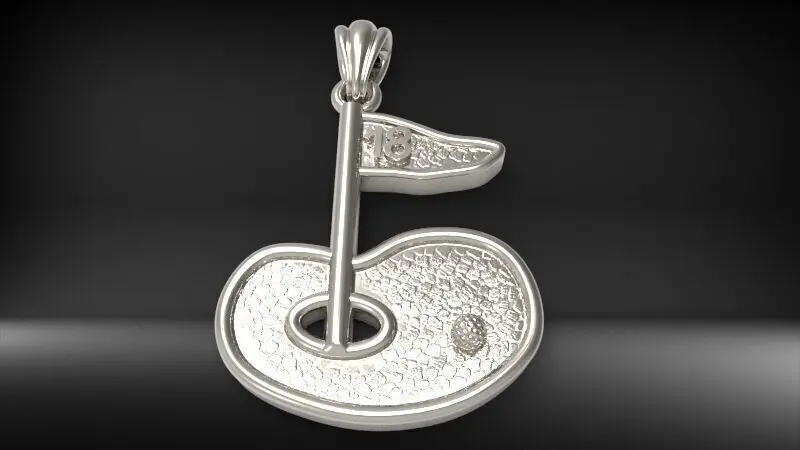 Golf Green with 18th Hole Flag Pendant, Necklace, Charm, Bracelet Jewelry