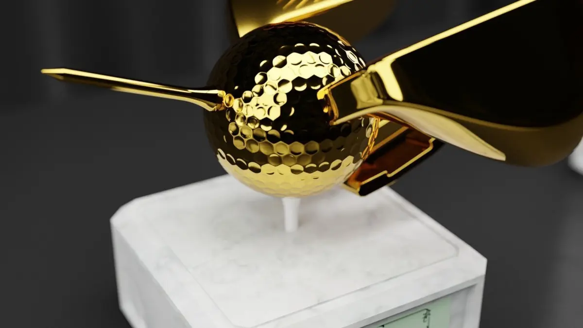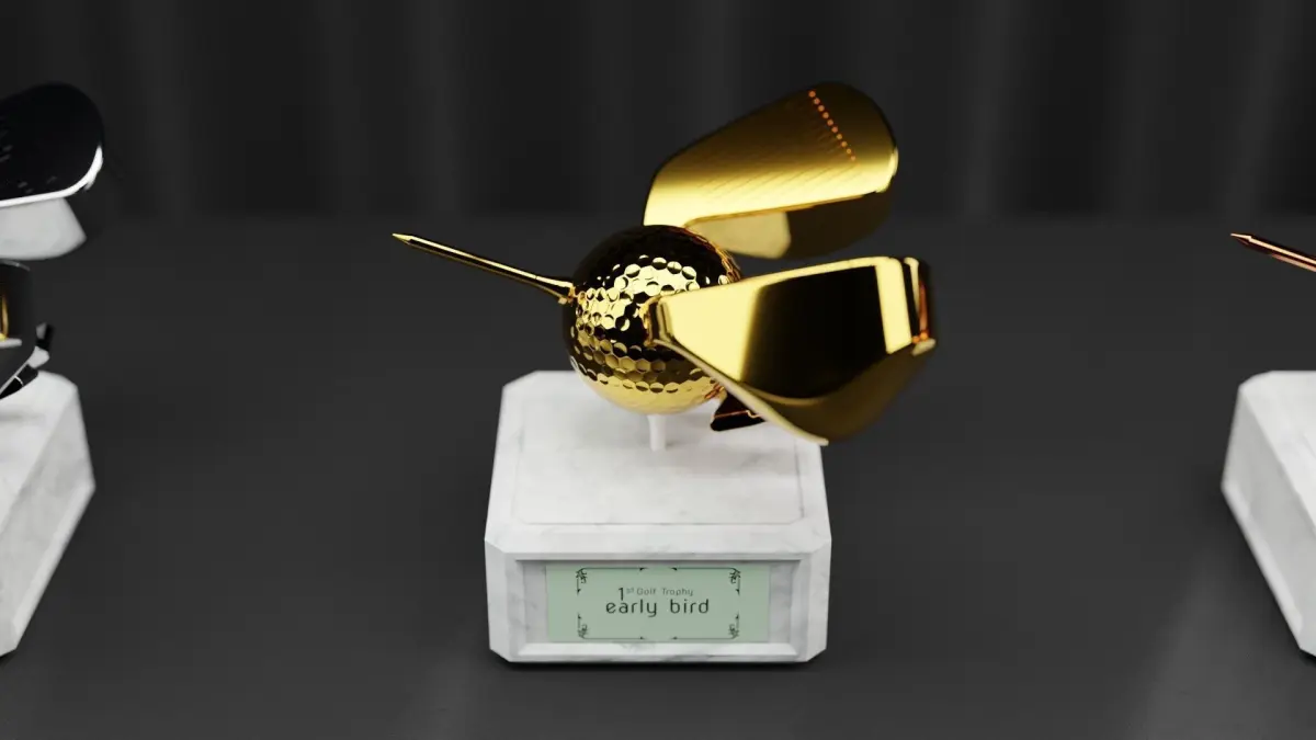 Golf is a club-and-ball sport in which players use various clubs to hit balls into a series of holes on a course in as few strokes as possible.A trophy is a tangible, durable reminder of a specific achievement, and serves as a recognition or evidence of merit. Trophies are often awarded for sporting events, from youth sports to professional-level athletics. In many sports medals (or, in North America, rings) are often given out either as the trophy or along with more traditional trophies.Originally the word trophy, derived from the Greek tropaion, referred to arms, standards, other property, or human captives and body parts (e.g., headhunting) captured in battle. These war trophies commemorated the military victories of a state, army or individual combatant. In modern warfare trophy taking is discouraged, but this sense of the word is reflected in hunting trophies and human trophy collecting by serial killers.