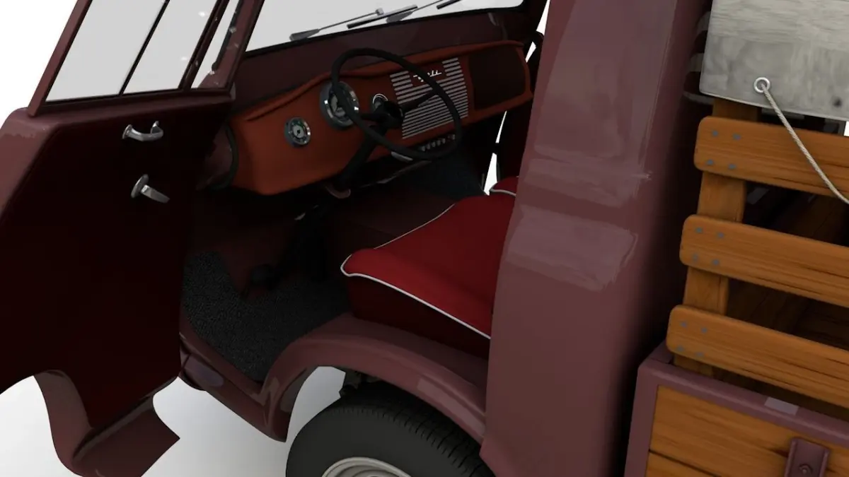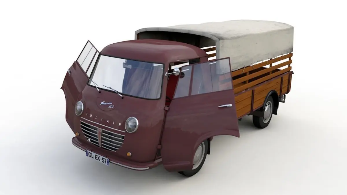 High detailed 3D model GOLIATH EXPRESS 1100 PICKUP 1957 with awning type 1, from inside and outside.