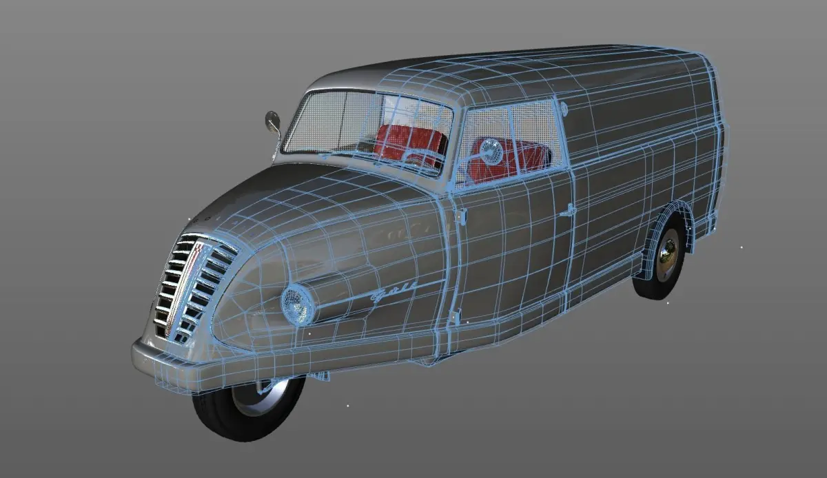 High detailed 3D model GOLIATH GOLI KASTENWAGEN 1955, from inside and outside.