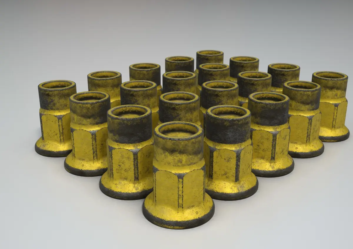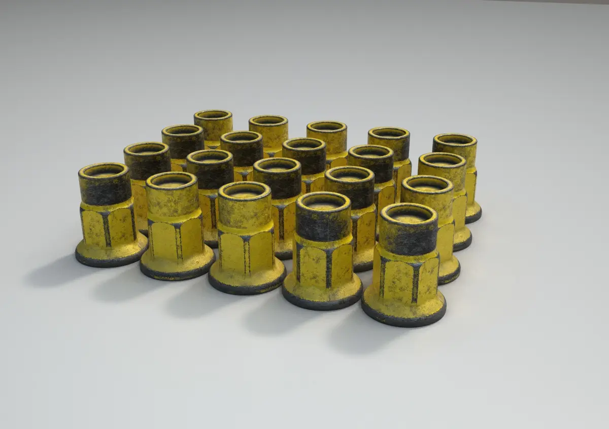 NOTE:Standardized FBX units in meters. The 3D model is ready for production and can be scaled up to HEX 18 and HEX 21. You must create your material and import the textures. Textures are included. Very detail mesh. PBR Metalness: include a set of color albedo, metallic, normal texture map custom made simulating different material finishing styles. There are different types of steel and alloy material (controlled by metalness) as examples. Simple to add color on top. In some cases, it also includes ambient occlusion, bumps normal map and metallic roughness texture as shown in the screenshots. Rendering is made inside Adobe Substance Painter NVIDIA Iray. You can import the texture to Adobe Substance Painter and make output texture to your favorite PBR render tool.