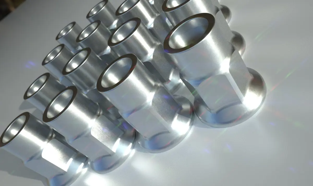 One Hi-end FBX 3D model meshes of a lug nut, bolt with custom style, lock nuts, and hand made custom textures for virtual automotive customization specific for a virtual visualization (VR), desktop game development, cinema, and automotive design.