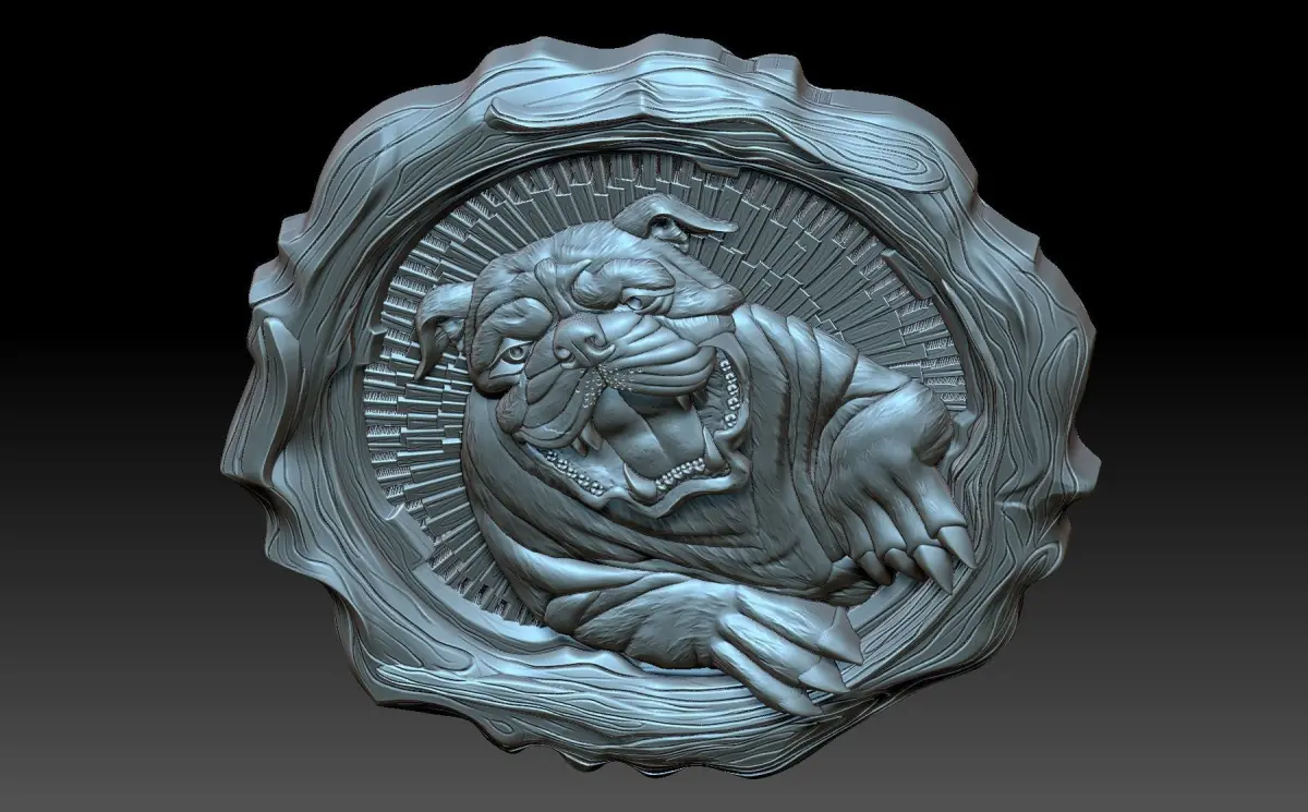 A bas-relief depicting a joyful bulldog. The work is done with well-developed details, which gives the work an interesting and original look.Suitable for CNC and 3D printing.