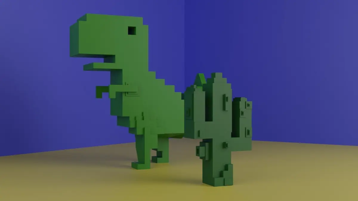 Google dinosaur 3d and cactus 3d. Dinosaur is rigged and low-poly(game ready). No textures, only materials. 5 different file exctensions: blend, fbx, obj, usdc, stl. Cycles rendered. Thanks for buying)