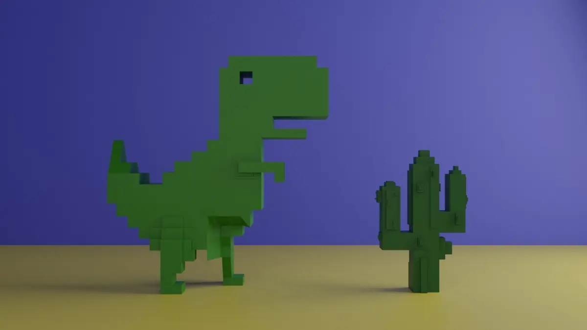 Google dinosaur 3d plus cactus Low-poly 3D model