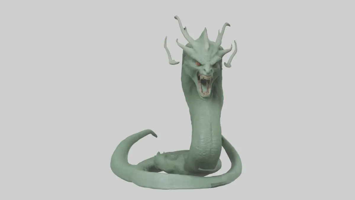Medusa, 3D-Modell, griechische Mythologie, Monster, mythologische Kreatur, Schlangenhaare, versteinertes Blick, furchterregend, tödlich, Fantasy, Horror, Charakterdesign, Schlange, Steinhaut, Zähne, Mythos
