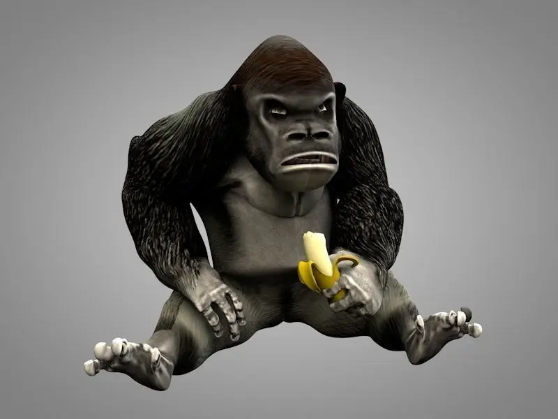 The model has four animations: roaring(1-31 frames), idle(eat banana 41-65 frames), sleep(71-77 frames) and walk (81-93 frames).