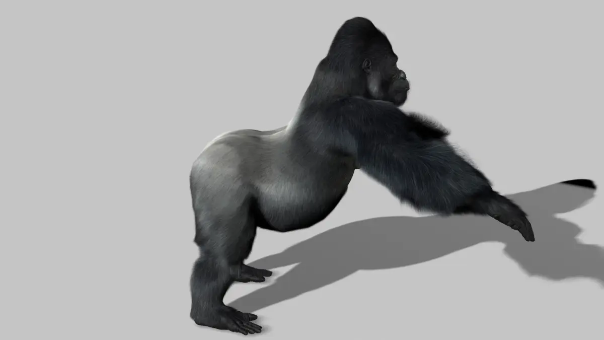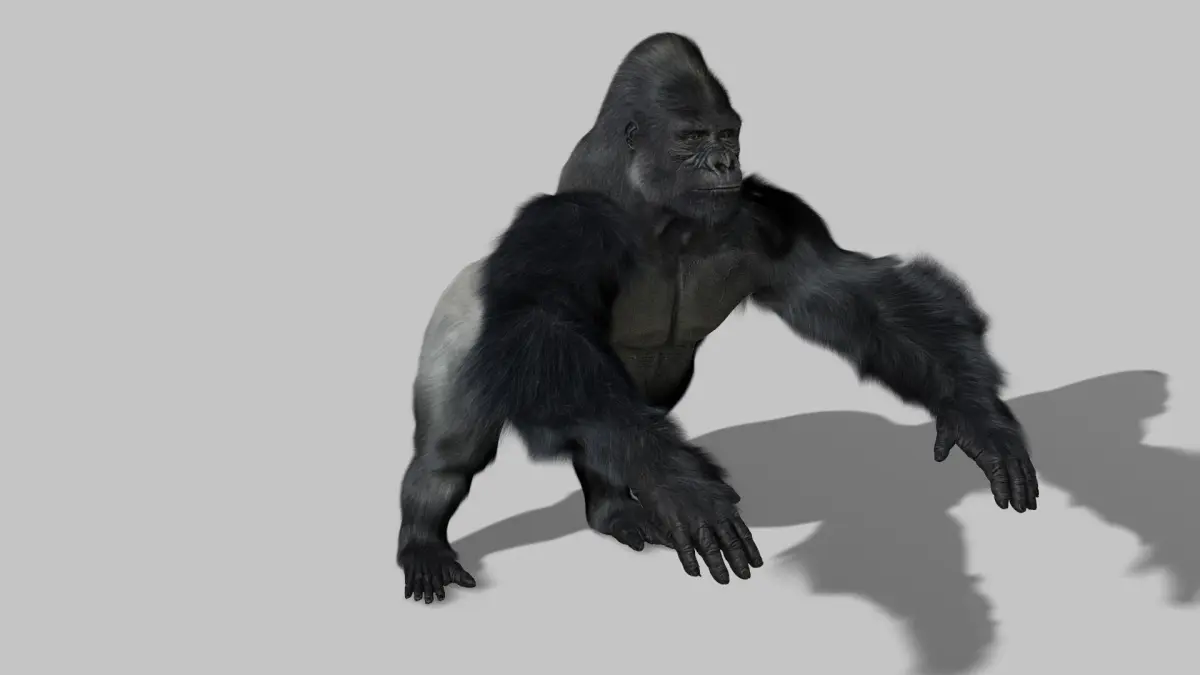 High Detailed Photorealistic Gorilla, completely UVmapped and smoothable, made with 3Ds Max 2014+ Hairfarm+rigging. The scene is just a base animation.