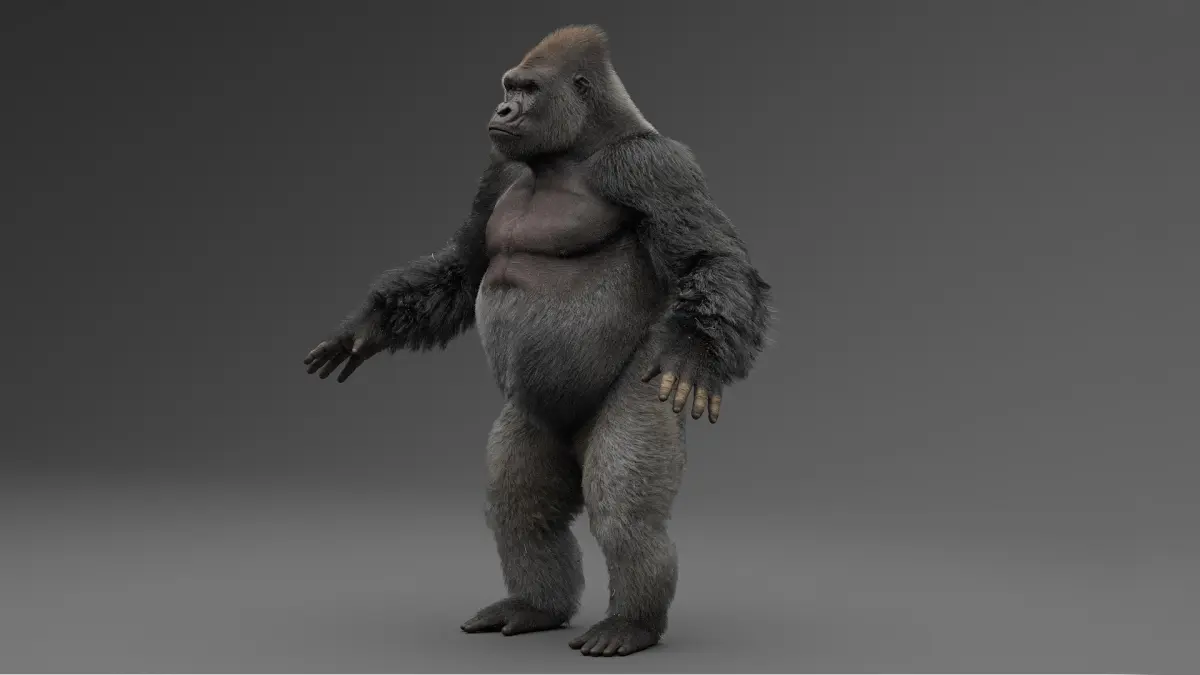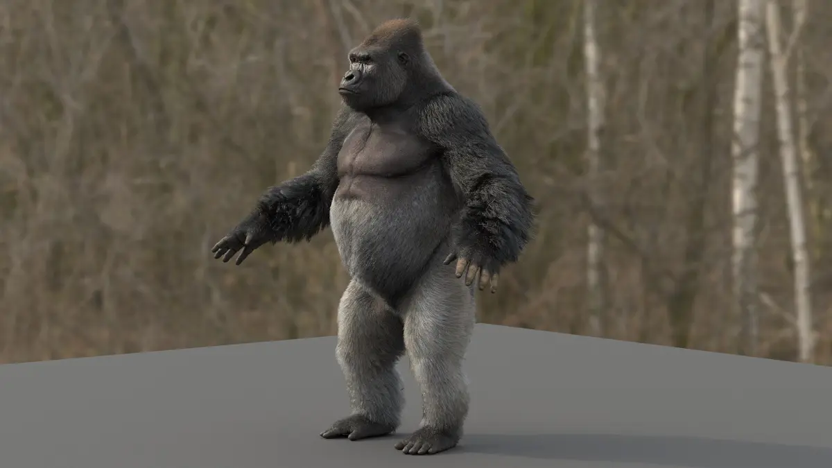High-quality realistic and Gorilla model with fur, it has Arnold materials with high-resolution textures. The Gorilla model has clean topology and good in one iteration of smoothing.