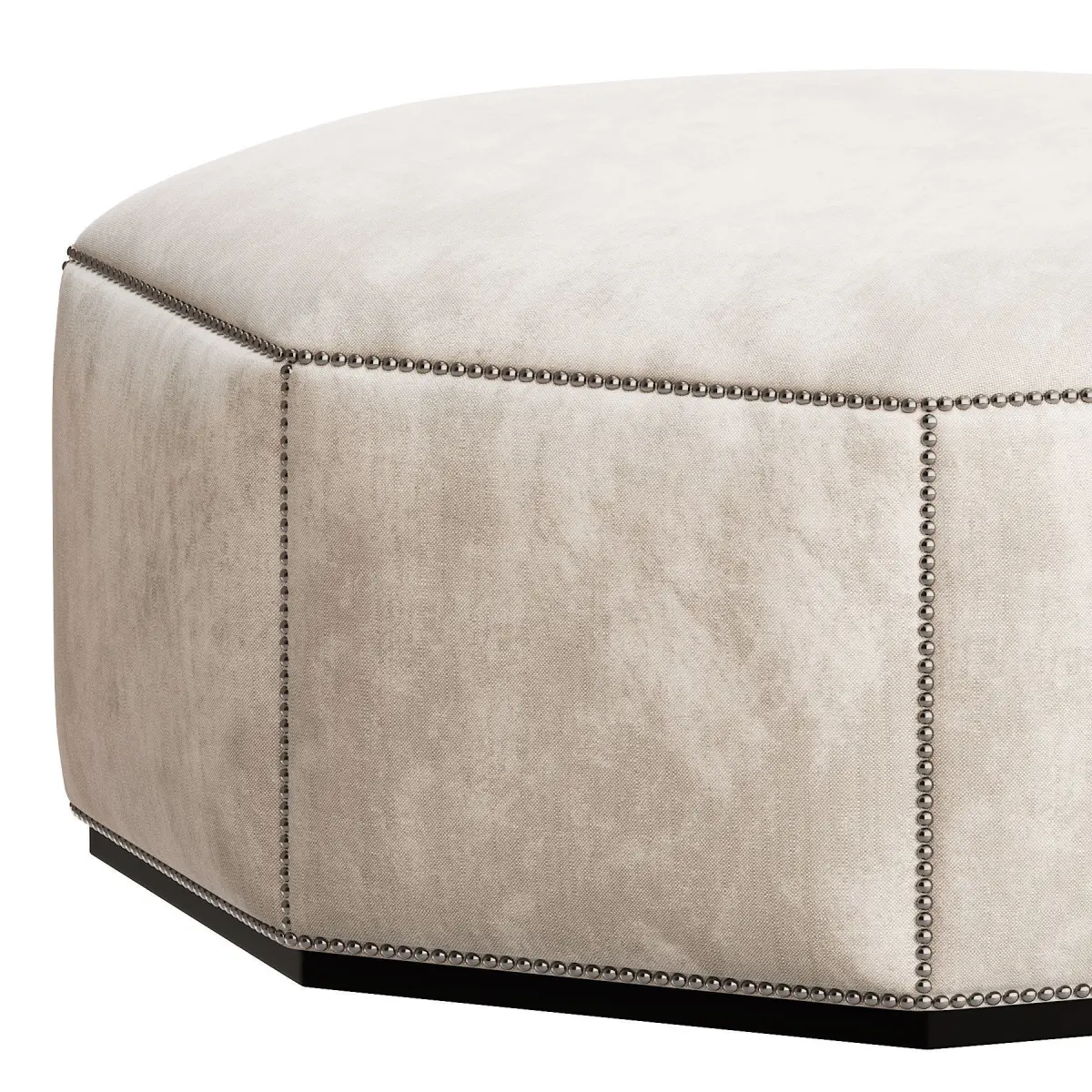 An unusual octagonal ottoman with close stud nailing running along each edge. Available with or without a plinth base and naturally to any size. The top is firm enough to support a tray, which we can make for you as well if you wanted, yet soft enough to place your feet up on at the end of a busy day’s walking!
