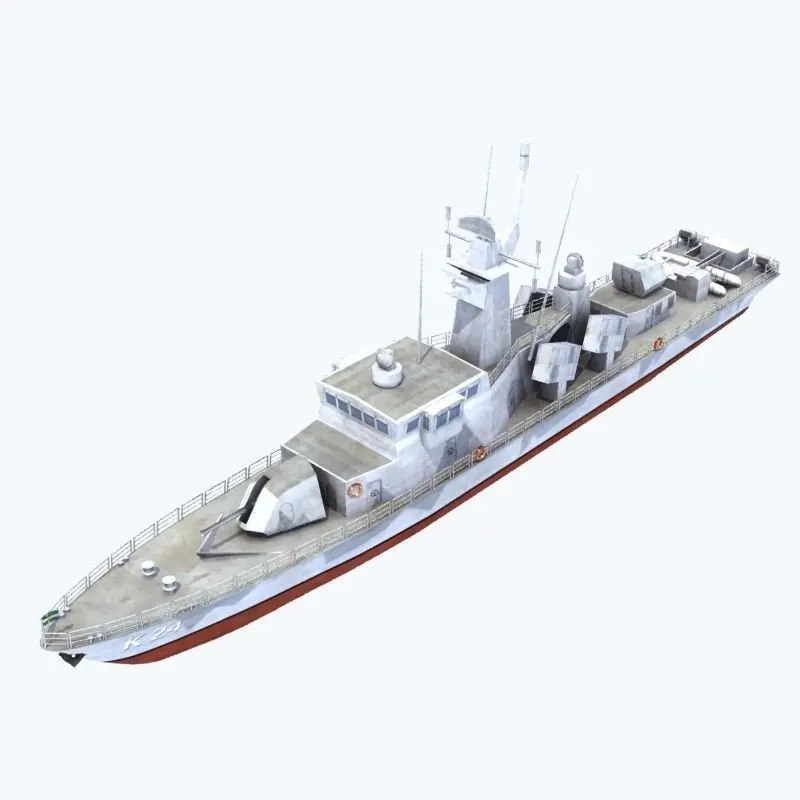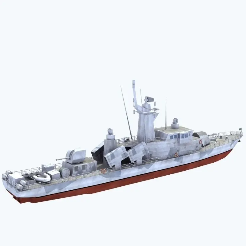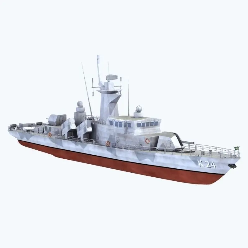 Model of a Goteborg Class fast attack craft (missile corvette) from the Swedish Navy. Single texture map used for the entire model.