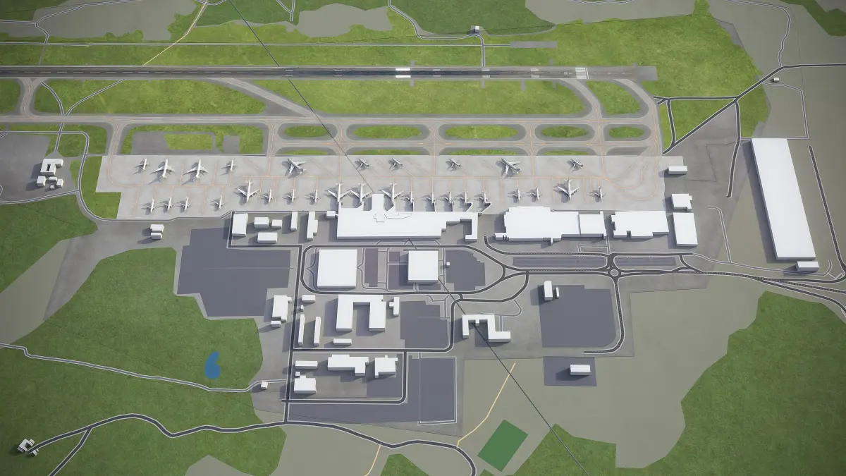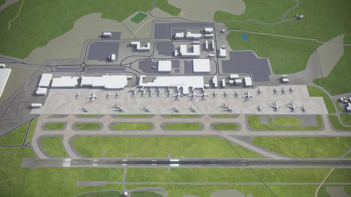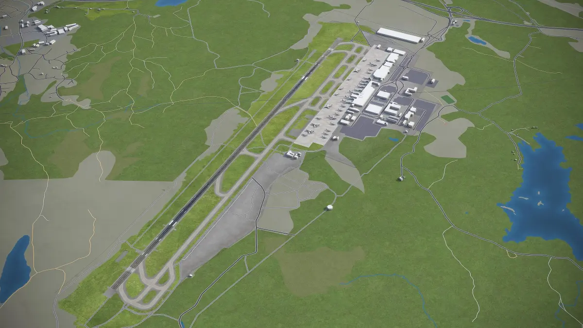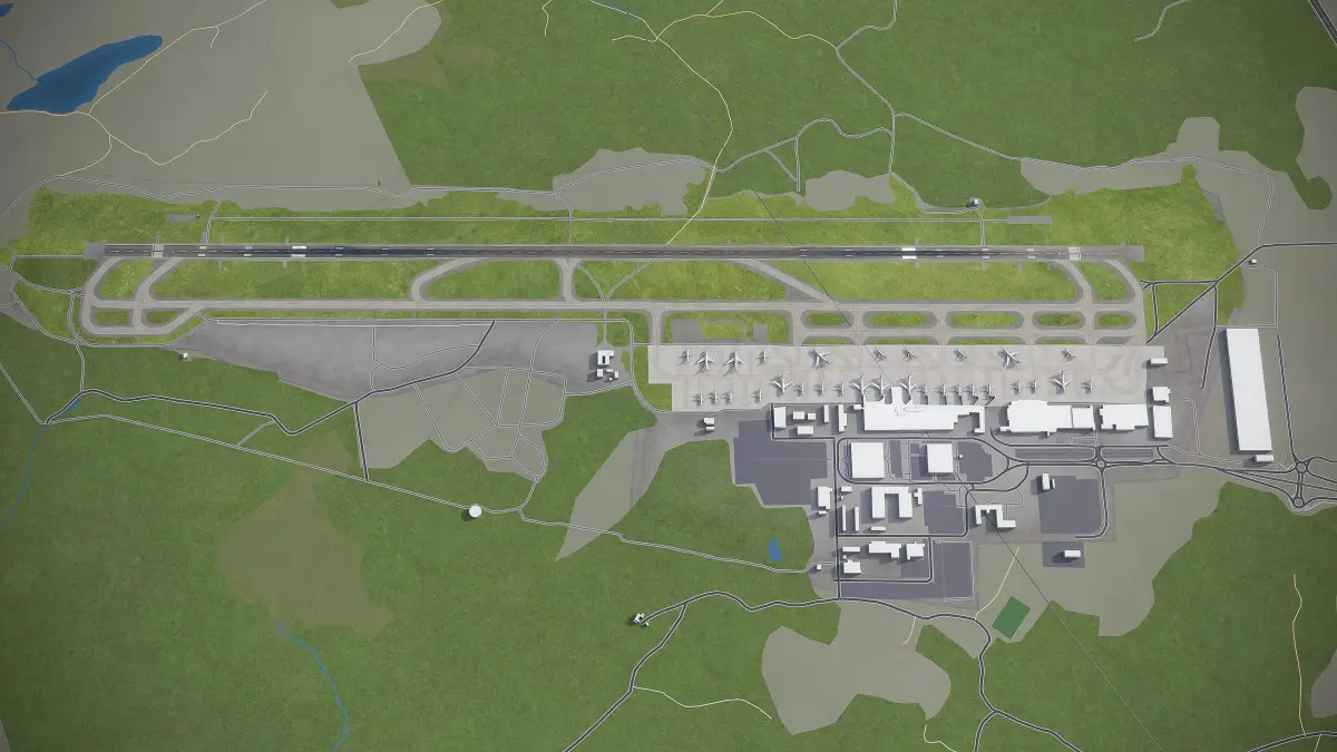 This is exact and accurate to-scale 3D model of Gothenburg - Landvetter Airport (GOT) and its surrounding area based on GIS data (May 2020)