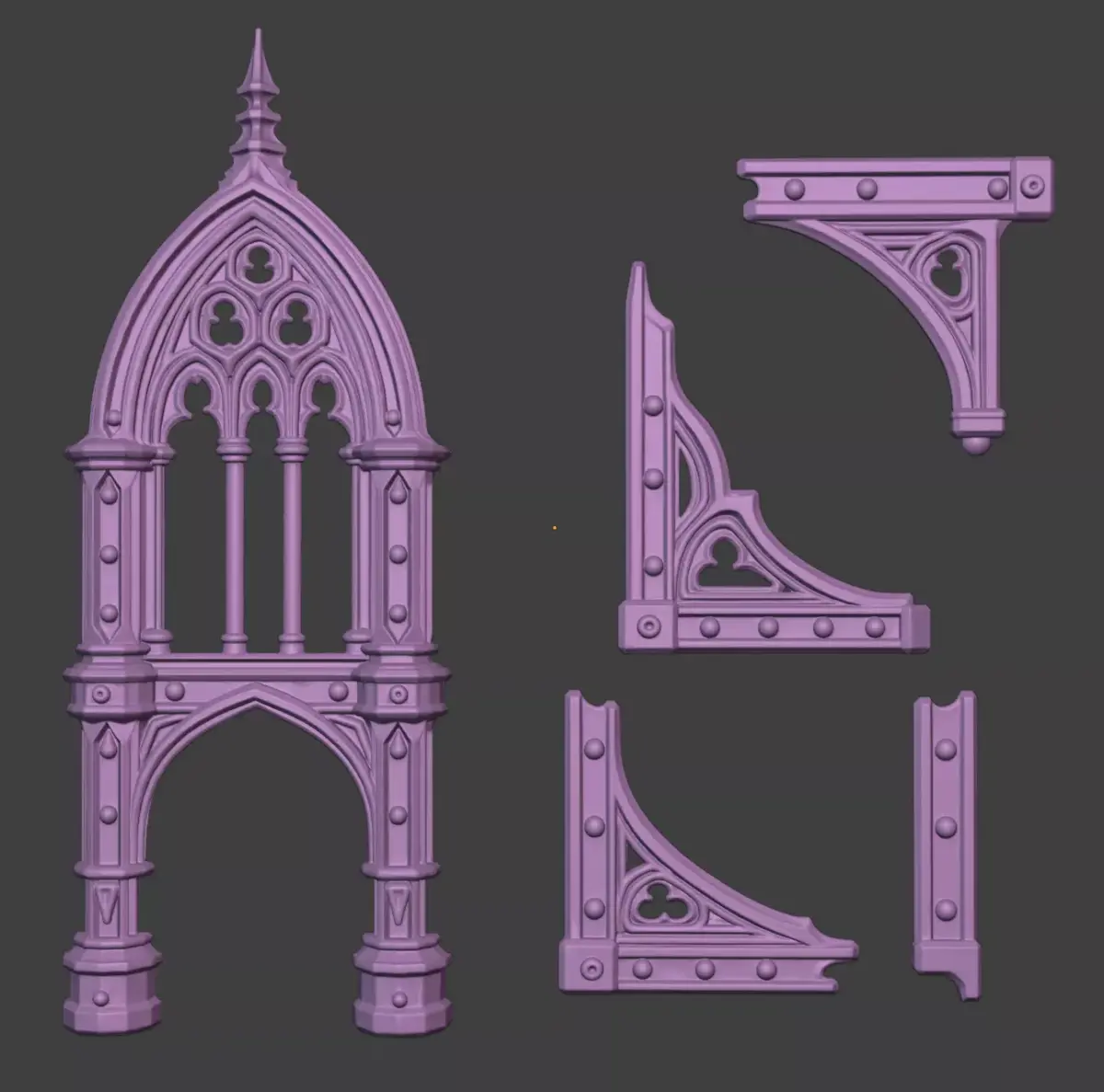 The Gothic Arches Book Cover Decor set features elegant pointed arches, ribbed columns, and ornate window tracery — perfect for book edges, dioramas, prop covers, or architectural miniatures.