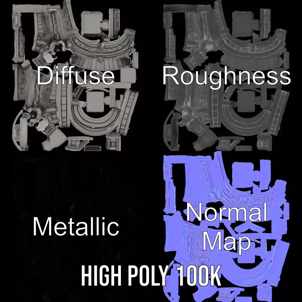 This Gothic Archway model, inspired by horror aesthetics, is a stunning addition to any project needing a dramatic architectural centerpiece. Its intricate detailing and imposing presence make it ideal for games, films, and virtual environments. Each model has 3 levels of detail: low-poly (1000 triangles for mobile), middle-poly (10,000 triangles for environment), and high-poly (100,000 triangles), which allows for the use of this model in production rendering (such as 3ds Max, Maya, Cinema4D, Blender, Vray/Corona/Cycles and all others), game engines (Unity and Unreal compatible), and interactive presentations, providing a choice of detail based on the LOD System principle. The model's textures are PBR, Diffuse, NormalMap, and reflection/roughness/metallic, which are suitable for any modern rendering engine. All models accurately unwrapped and have no overlapping UV. Ideal for use in creating haunted castles, fantasy realms, and cinematic scenes. All textures are 4096x4096 in size. Please like and leave a comment for the model if you enjoyed it.