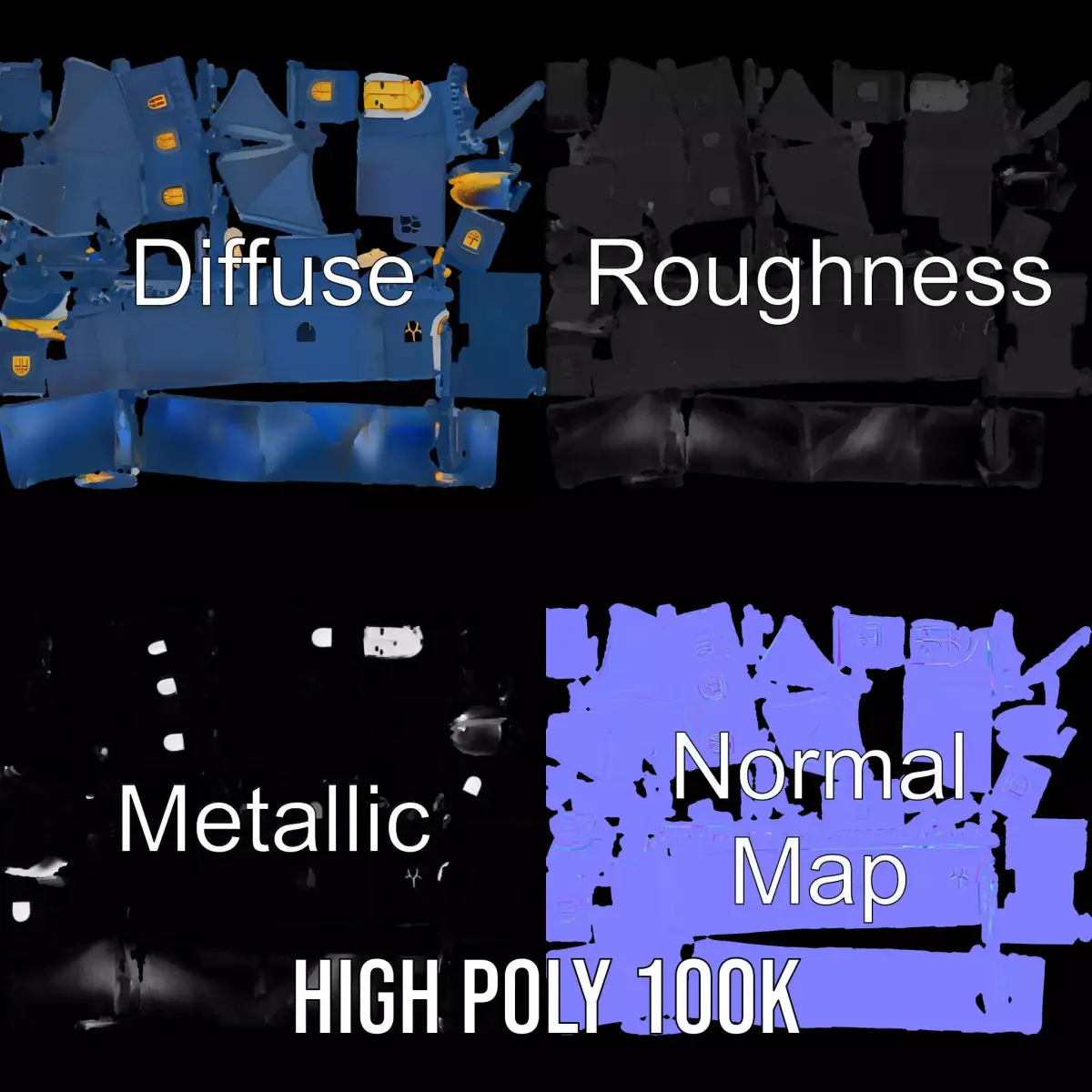 This Gothic Blue House model features a captivating dark blue exterior with detailed architectural elements, such as arched windows and a unique roof design. Ideal for use in game environments, animations, or architectural visualizations, the model comes with three levels of detail to suit any project requirement. Each model has 3 levels of detail: low-poly (1000 triangles for mobile), middle-poly (10,000 triangles for environment), and high-poly (100,000 triangles), allowing for use in production rendering with software like 3ds Max, Maya, Cinema4D, Blender, Vray/Corona/Cycles, and more. Compatible with game engines such as Unity and Unreal, and perfect for interactive presentations. The model includes PBR textures, Diffuse, NormalMap, and reflection/roughness/metallic, ideal for modern rendering engines, and all textures are 4096x4096 in size. The models are accurately unwrapped with no overlapping UVs. If you enjoy this model, please like and leave a comment.